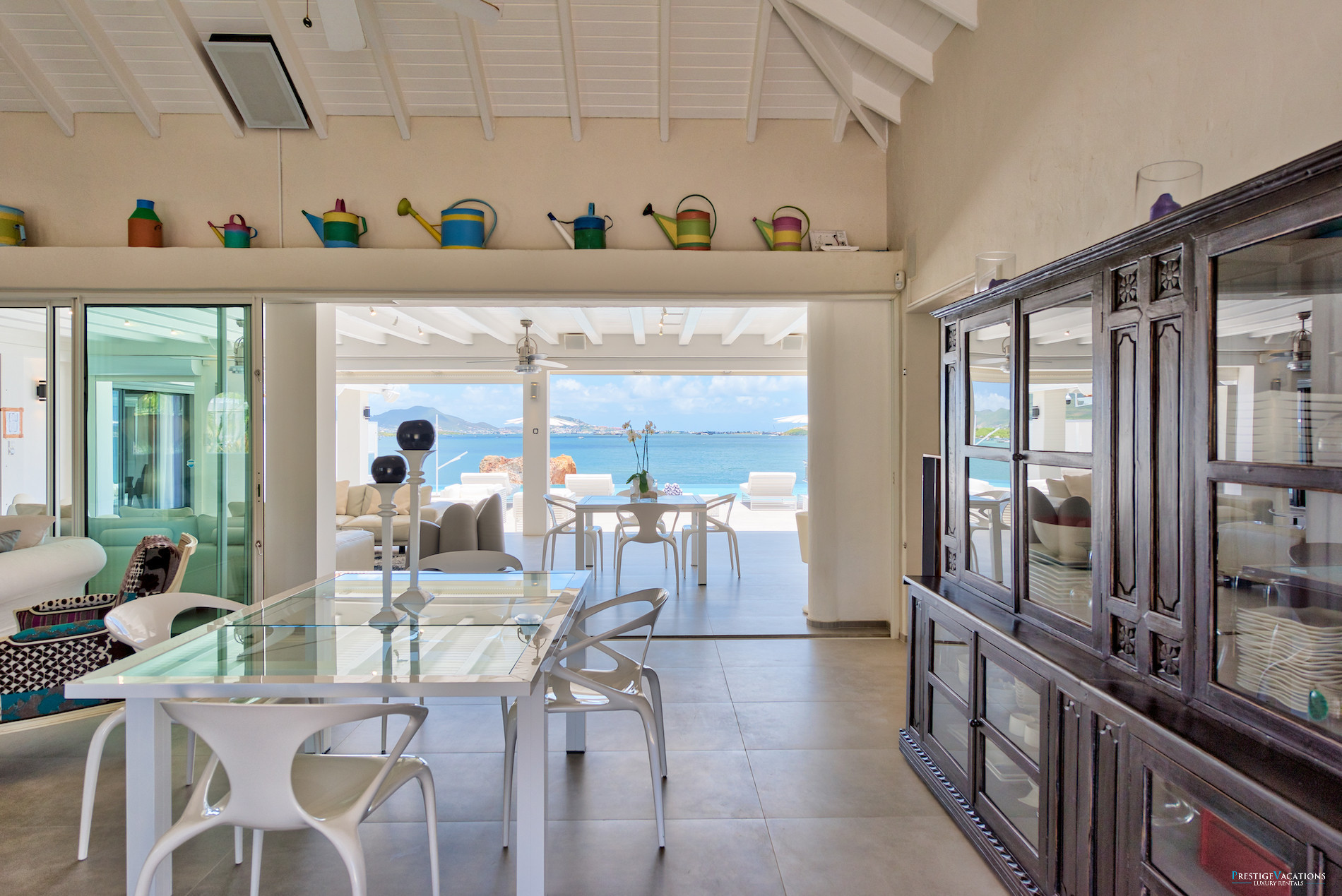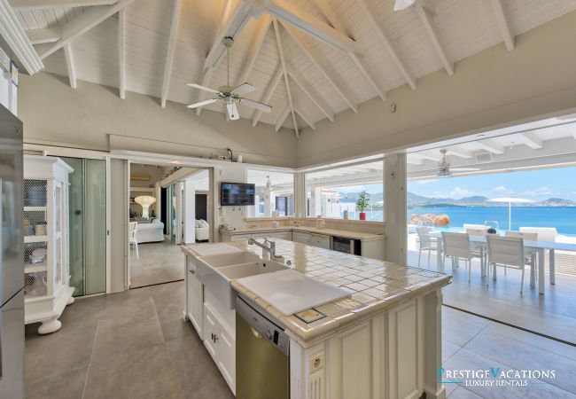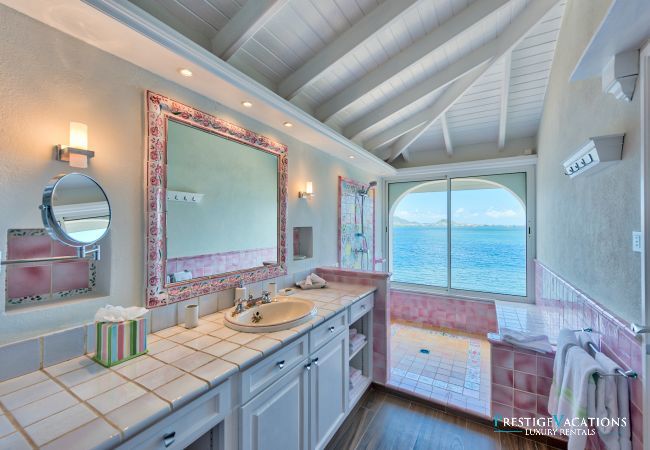 La Villa Mirabelle est une villa de luxe à louer à Saint Martin, idéalement située en bord de mer, au sommet d’une colline dans le quartier prisé des Terres Basses. Cette location villa luxe à Saint Martin offre une vue panoramique exceptionnelle sur le lagon de Simpson Bay, un jardin tropical luxuriant, une plage privée et un accès rapide à la célèbre plage de Baie Rouge, à seulement 300 mètres à pied.