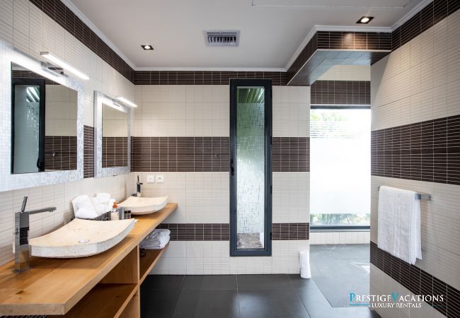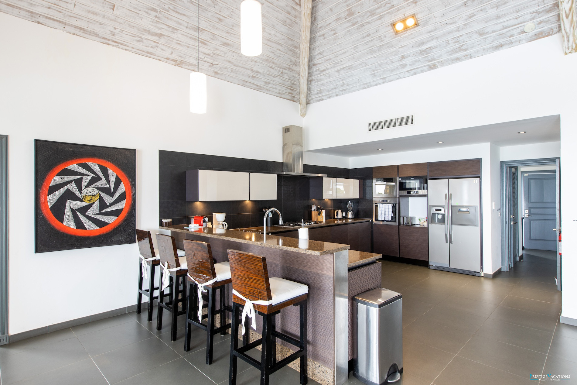 The modern and fully equipped kitchen completes this prestigious villa that combines elegance and comfort. Our concierge service is available to organize your activities, restaurants, private services, or excursions.