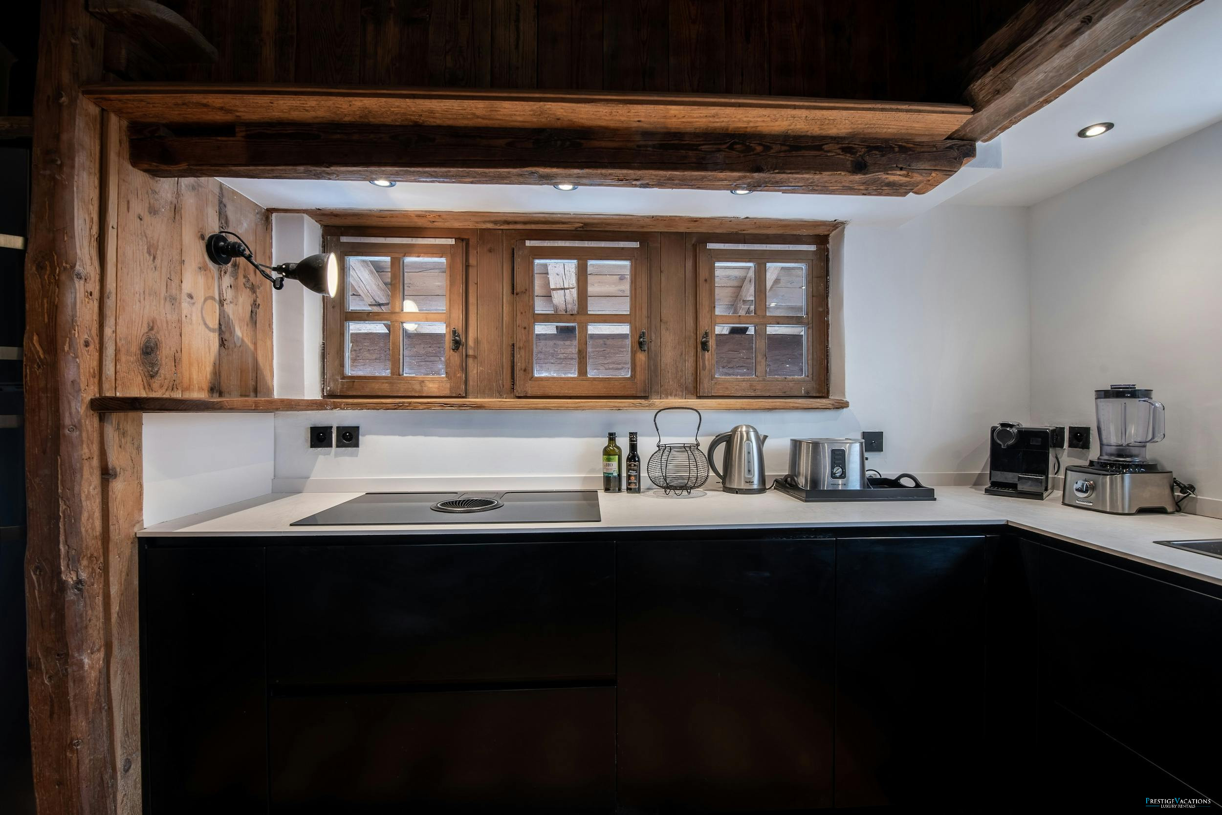 À l'intérieur, le chalet évoque la chaleur et le charme d'un refuge de montagne féerique. Des poutres rustiques, des garnitures douces colorées et un feu de bois rugissant créent une atmosphère chaleureuse et accueillante dans l'espace de vie spacieux, où des sièges de canapé généreux invitent les invités à se détendre ensemble après des journées sur les pistes.