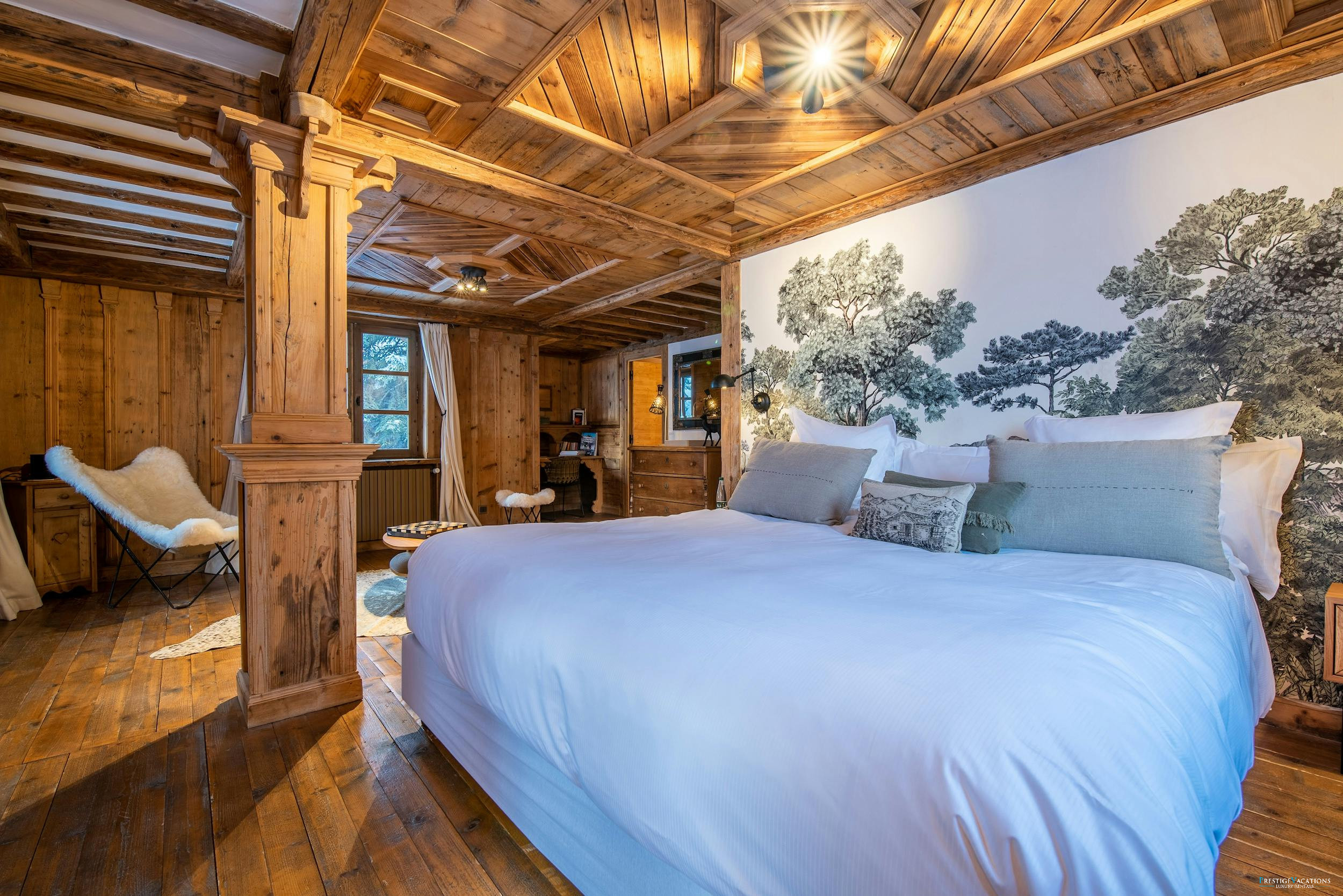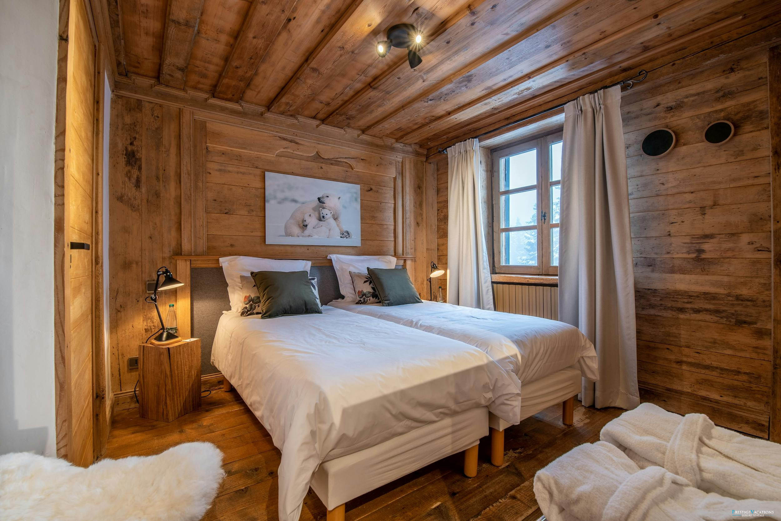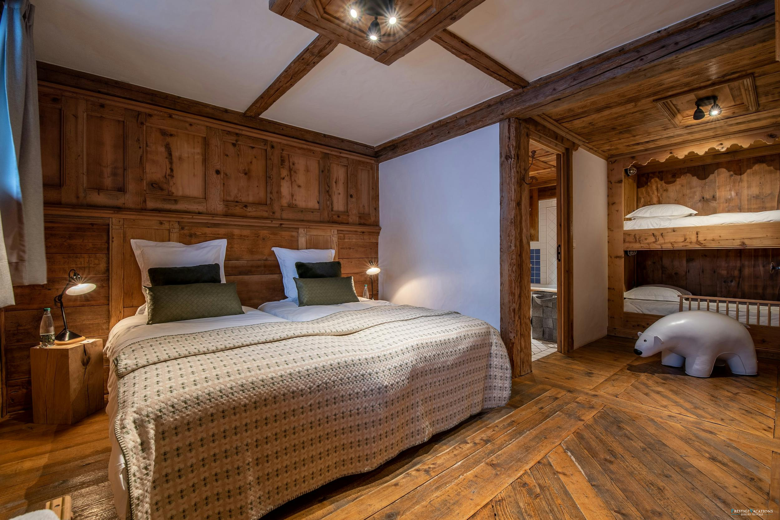 Les chambres du chalet, sereines et magnifiquement aménagées, poursuivent le thème rustique alpin, offrant des espaces paisibles pour des nuits reposantes. La suite principale bénéficie de vues spectaculaires sur La Saulire, tandis que la chambre familiale comprend des lits superposés charmants pour les jeunes invités. Trois chambres doubles supplémentaires garantissent un hébergement confortable pour jusqu'à douze personnes.