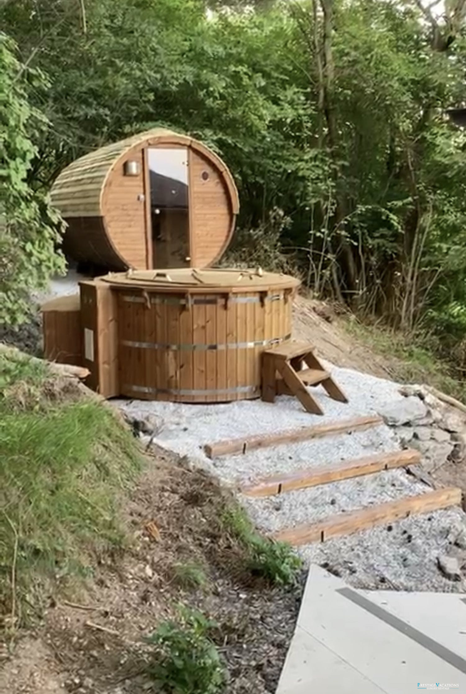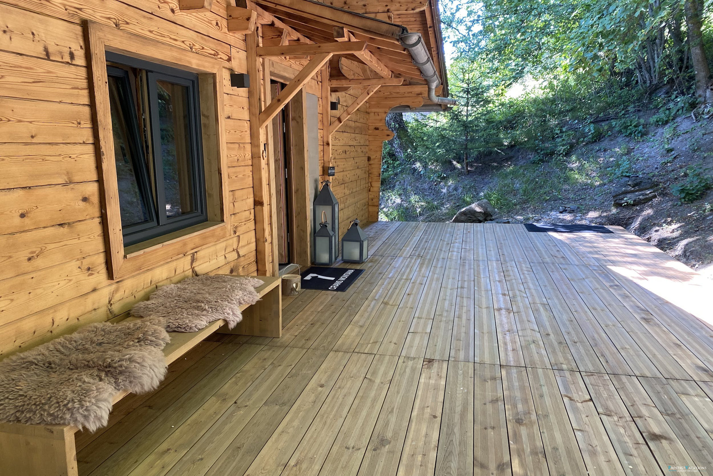 Après une journée d'aventure, le jacuzzi extérieur pour dix personnes et le sauna panoramique pour huit avec une fenêtre en verre à 360° donnant sur la forêt promettent une détente sans précédent. Le jardin spacieux et la terrasse baignée de soleil vous invitent à vous attarder, à respirer l'air de montagne frais et à vous imprégner de la sérénité alpine.