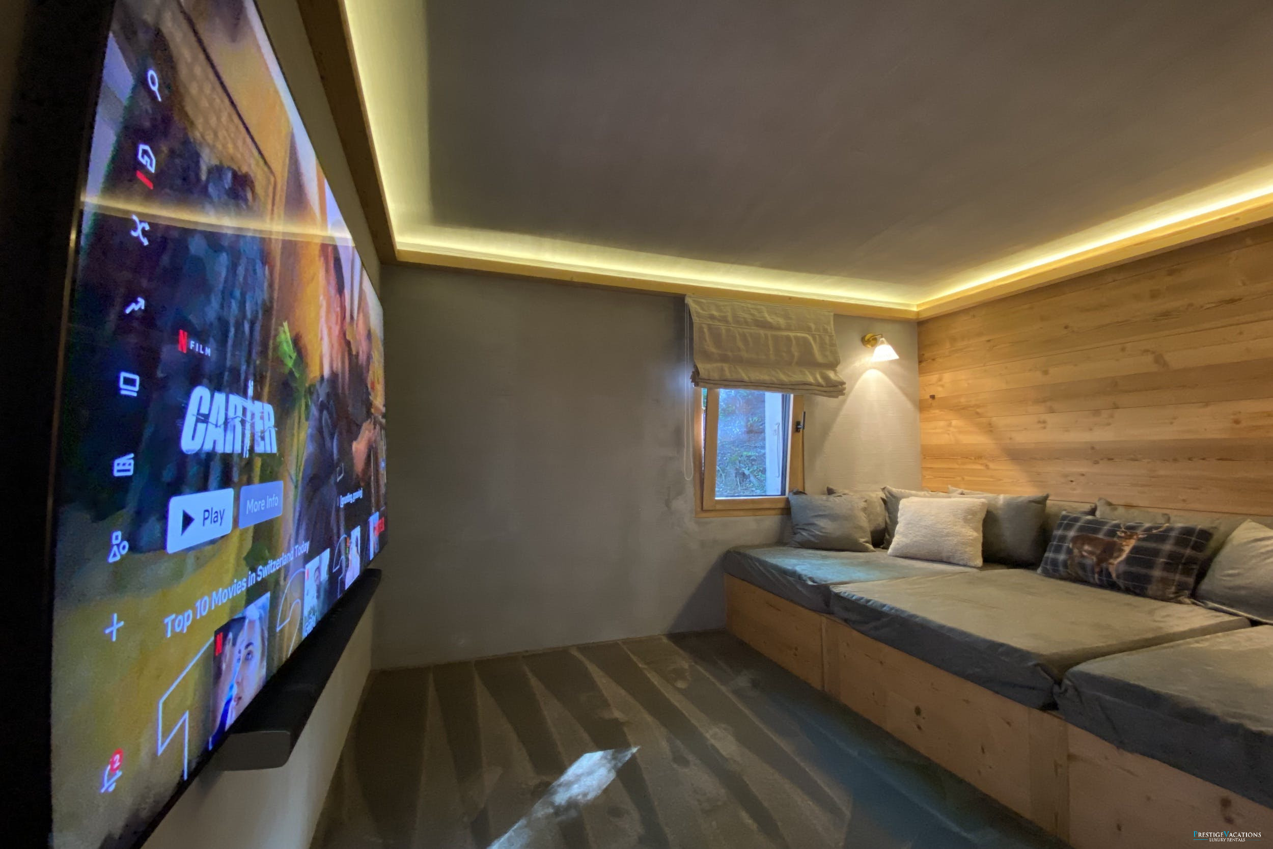 Que ce soit en se détendant près de la cheminée ou en se réunissant dans la salle de cinéma ultramoderne pour une expérience cinématographique immersive, chaque détail a été conçu pour un plaisir absolu. La cuisine entièrement équipée vous invite à préparer des repas délicieux, tandis que des commodités modernes comme les installations de buanderie garantissent un séjour sans accroc.