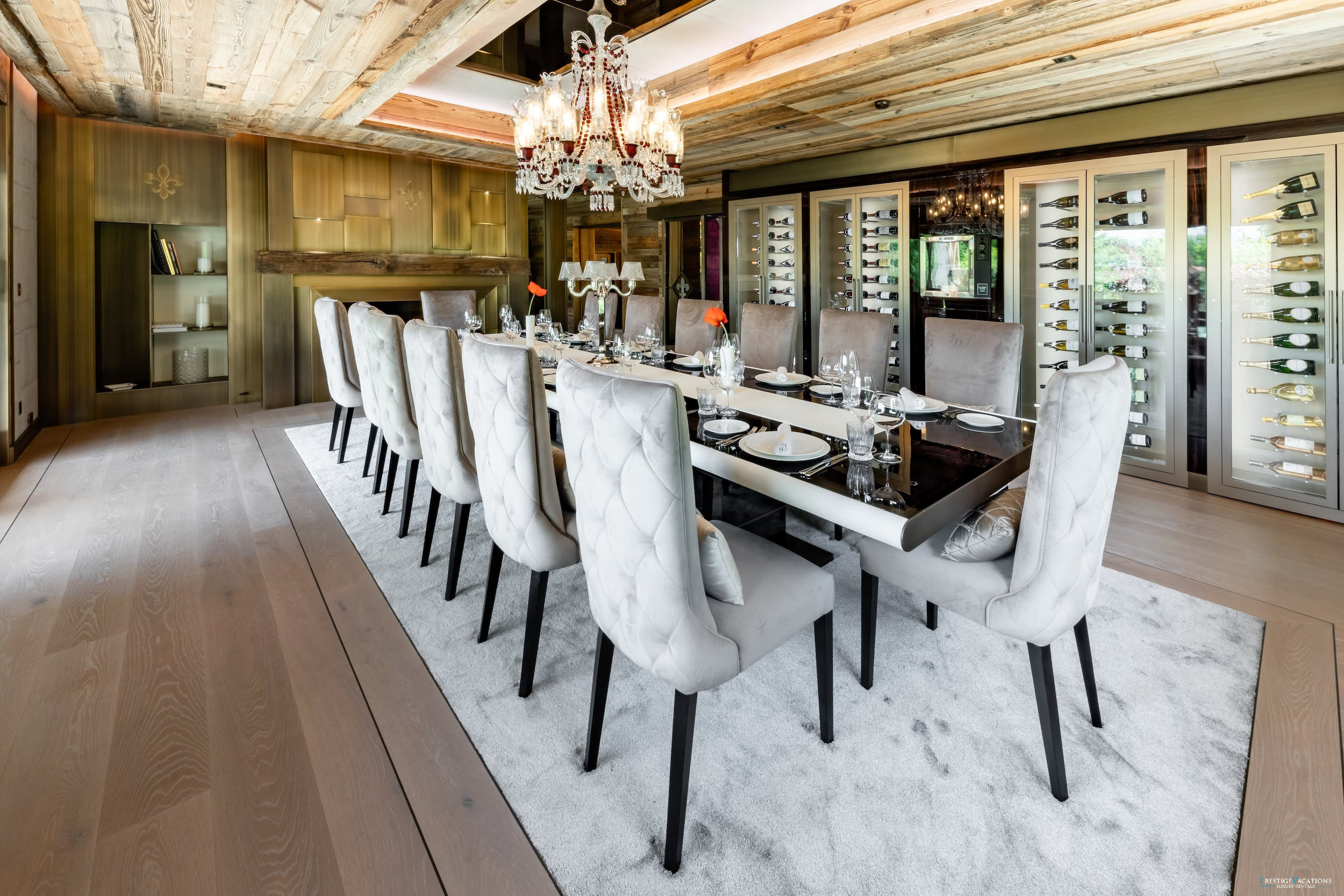 Ce chalet de luxe à louer à Crans-Montana se distingue par sa structure entièrement privatisable, composée de deux chalets reliés, pouvant accueillir jusqu’à 38 hôtes. Les 14 suites lumineuses, habillées de bois noble et dotées de vues panoramiques, se déclinent avec élégance entre esprit montagnard et design contemporain. La décoration intérieure, pensée comme un cocon feutré, met en valeur la nature environnante et l’artisanat local tout en intégrant les dernières technologies.