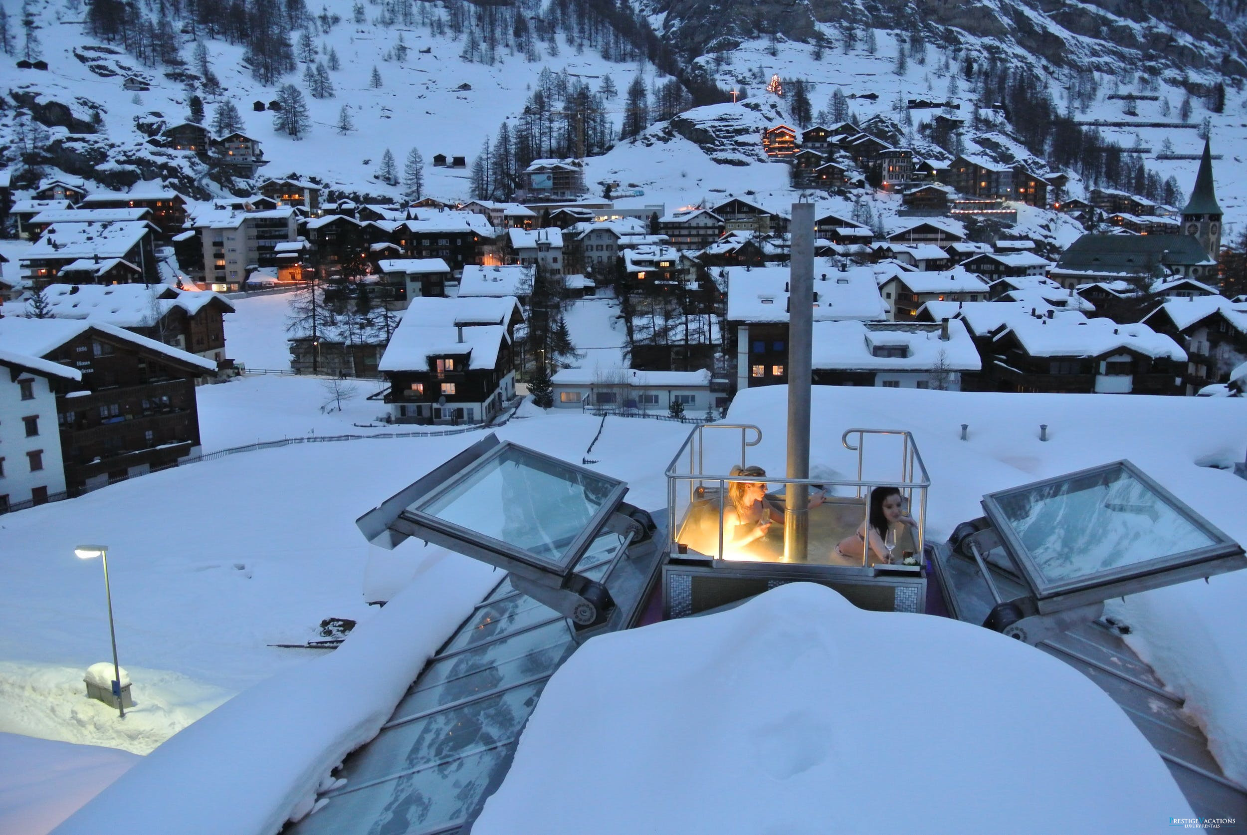 Le joyau couronnant du Chalet Sapphire est son extraordinaire jacuzzi sur le toit — un chef-d'œuvre d'ingénierie sans égal au monde. Pouvant accueillir jusqu'à six invités, cette piscine luxueuse s'élève hydrauliquement au-dessus du toit au simple toucher d'un bouton, révélant un panorama sans pareil de sommets enneigés. Depuis ce point de vue surélevé, les vues panoramiques des Alpes créent une expérience inoubliable.