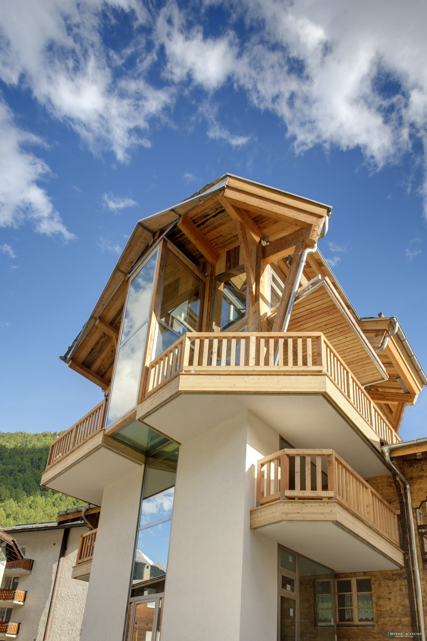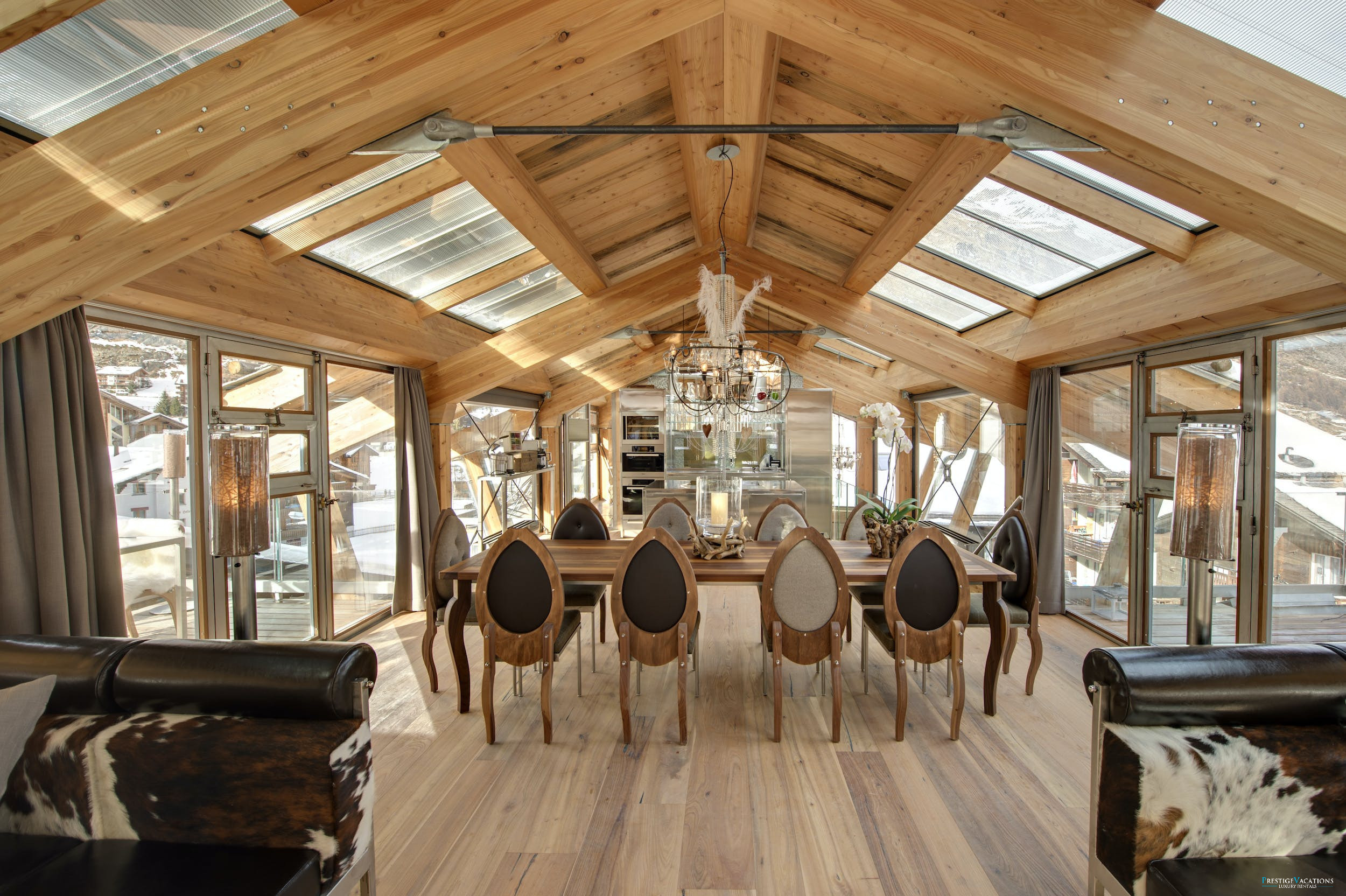 Ce chalet de luxe exceptionnel dans les Alpes suisses allie tradition intemporelle et sophistication moderne. Originellement une maison valaisanne des années 1940, le Chalet Sapphire a été transformé par ses propriétaires avec l'ajout de deux étages contemporains tout en préservant son charme alpin authentique. Le bois de mélèze local et les immenses parois vitrées encadrent des vues à 360 degrés à couper le souffle sur le village et l'emblématique Cervin, immergeant les invités dans la beauté naturelle de Zermatt.