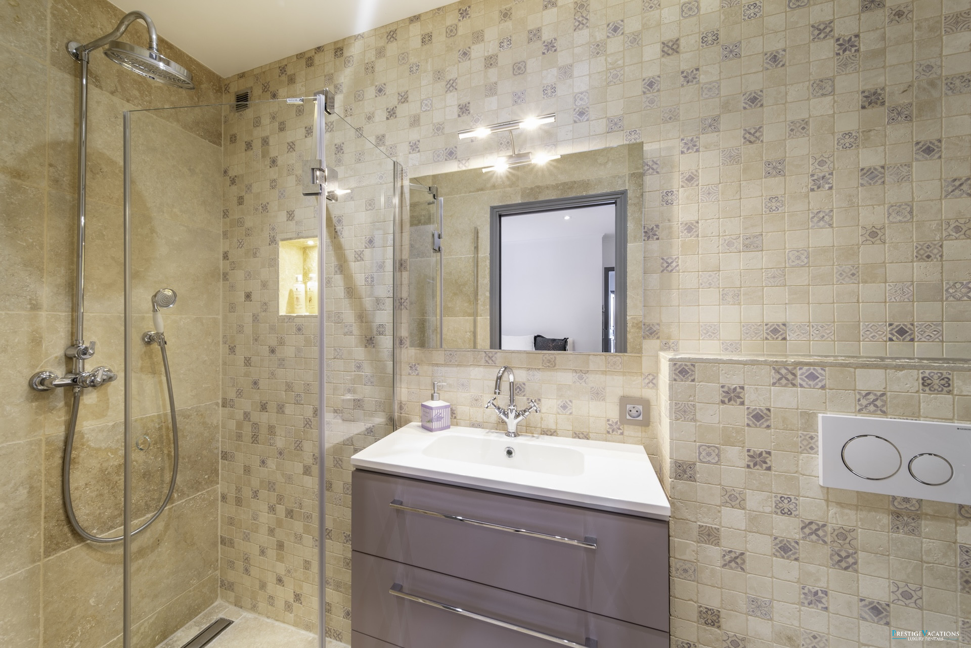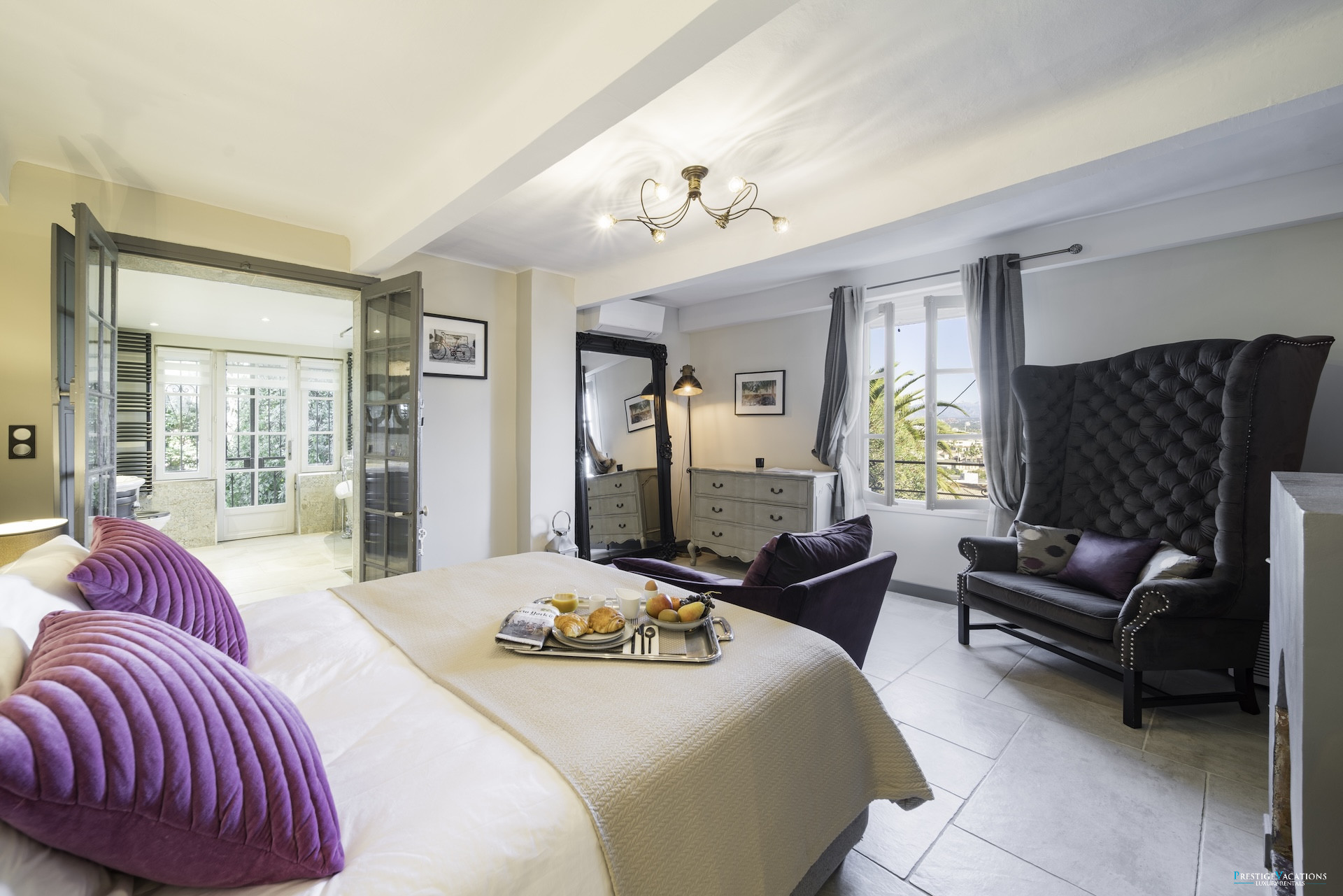 Les cuisines, aux prestations d'exception, conjuguent design contemporain et fonctionnalité, tout en respectant l'âme provençale de la demeure. Pour un séjour en famille ou entre amis, la Villa Mayflower propose cinq suites privatives, véritables cocons de sérénité : une suite king size et quatre suites queen, chacune dotée de sa salle de bain attenante. Certaines s'ouvrent sur des terrasses confidentielles, d'autres offrent des perspectives sublimes sur la mer ou les collines environnantes. Un canapé convertible complète les capacités d'accueil pour un confort optimal.