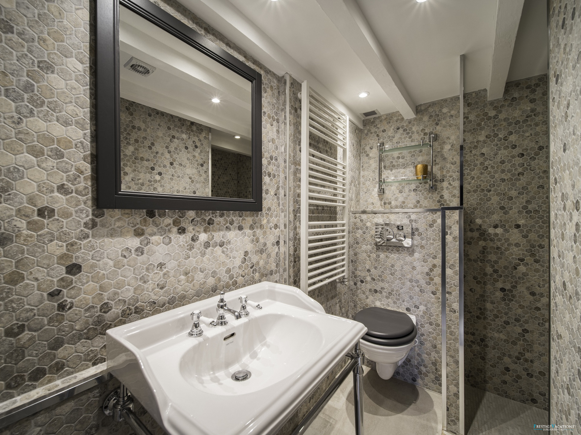 Derrière ses façades en pierres anciennes, la Villa Mayflower dévoile des volumes généreux et une mise en scène intérieure d'une grande sophistication. Le vaste espace de réception, baigné de lumière naturelle, s'ouvre harmonieusement sur les extérieurs grâce à d'imposantes baies vitrées, créant une continuité fluide entre intérieur et paysage méditerranéen. Les matériaux nobles, le mobilier choisi avec soin et les finitions sur mesure confèrent à l'ensemble une signature élégante et intemporelle, à la hauteur des exigences d'une clientèle internationale en quête d'une location de prestige à Antibes.