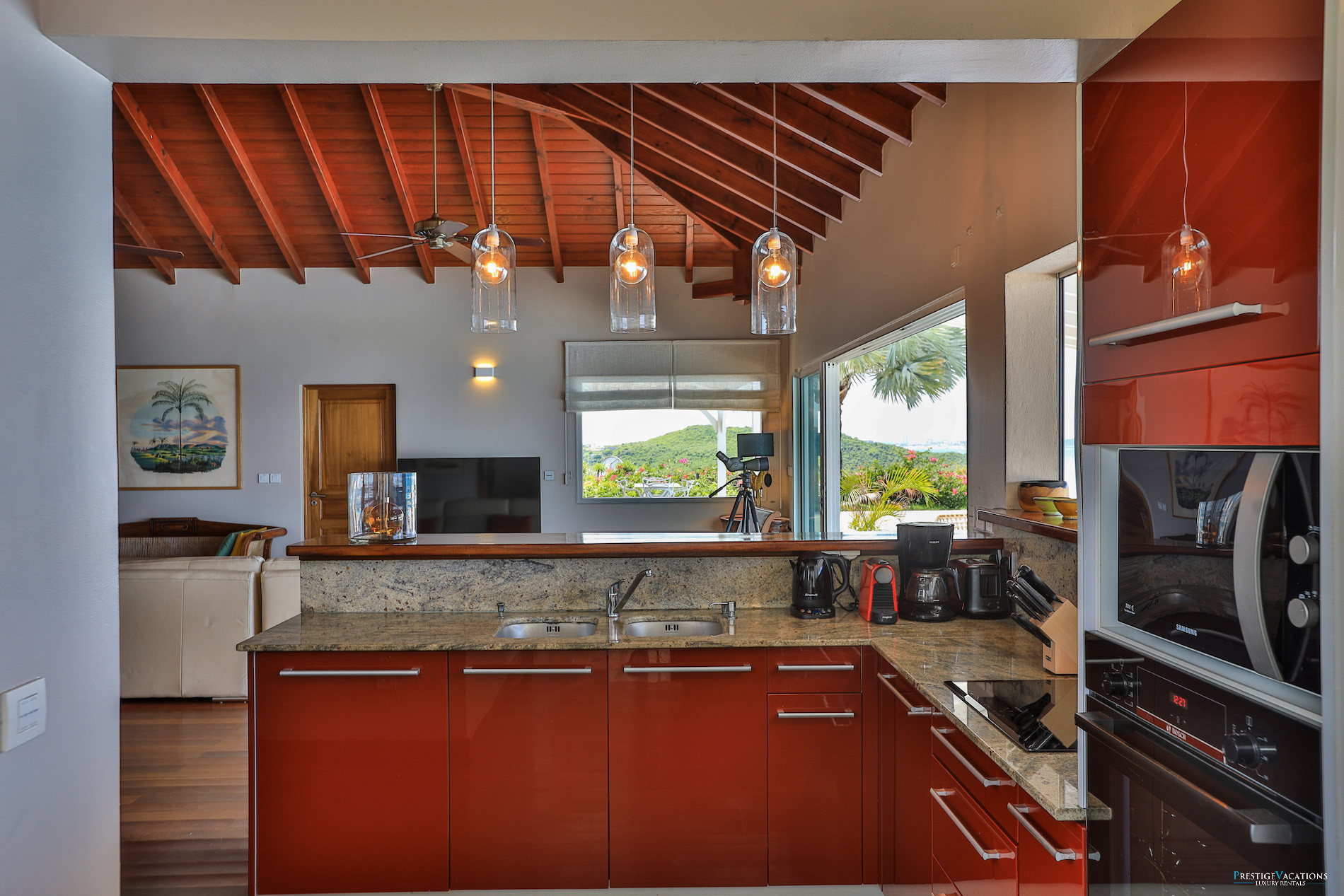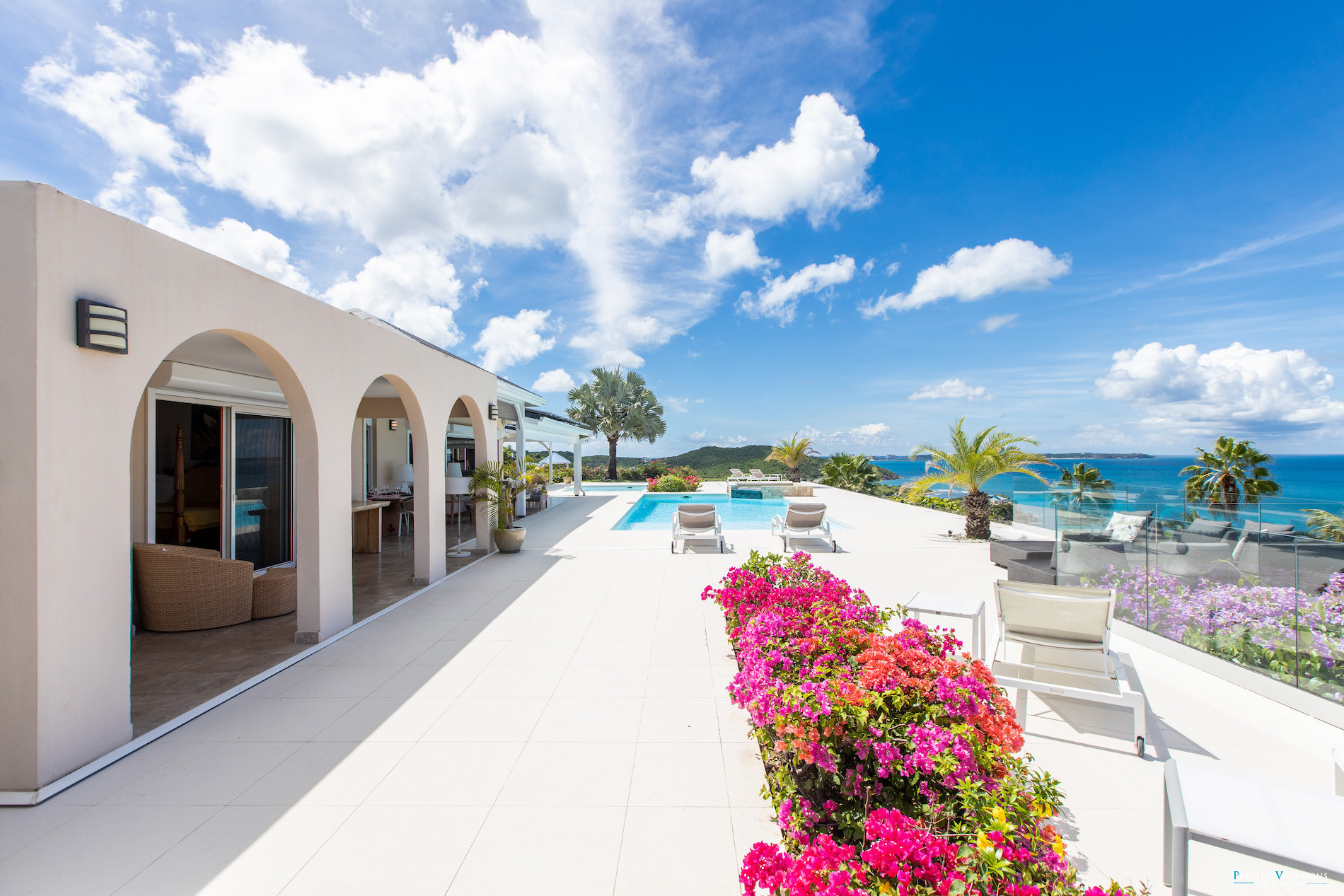 Érigée au cœur d’un environnement tropical préservé, cette location de villa de luxe à Saint-Martin propose cinq chambres raffinées et cinq salles de bains, alliant confort moderne et charme caribéen. Son vaste espace de vie ouvert sur la mer invite à la détente, tandis que la grande terrasse bordée de palmiers et de fleurs exotiques vous enveloppe d’une douceur paradisiaque. Deux piscines chauffées et un bain à bulles surplombent le littoral, créant un lieu idéal pour savourer des moments d’intimité absolue.