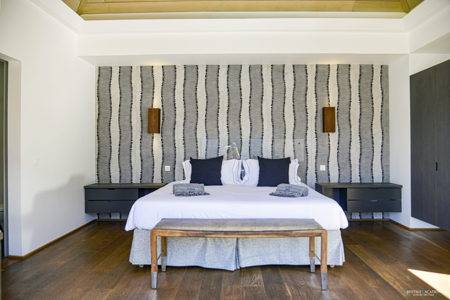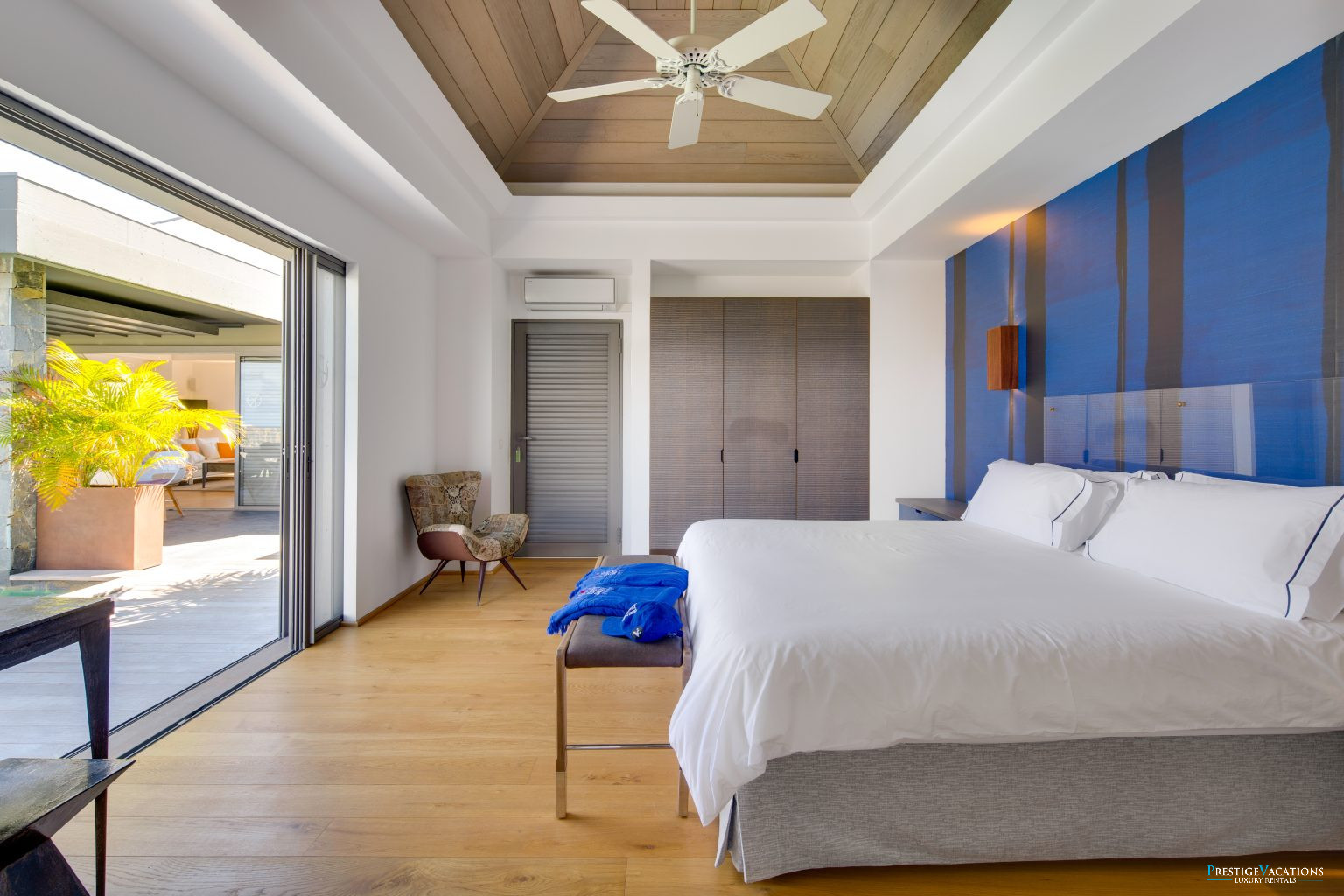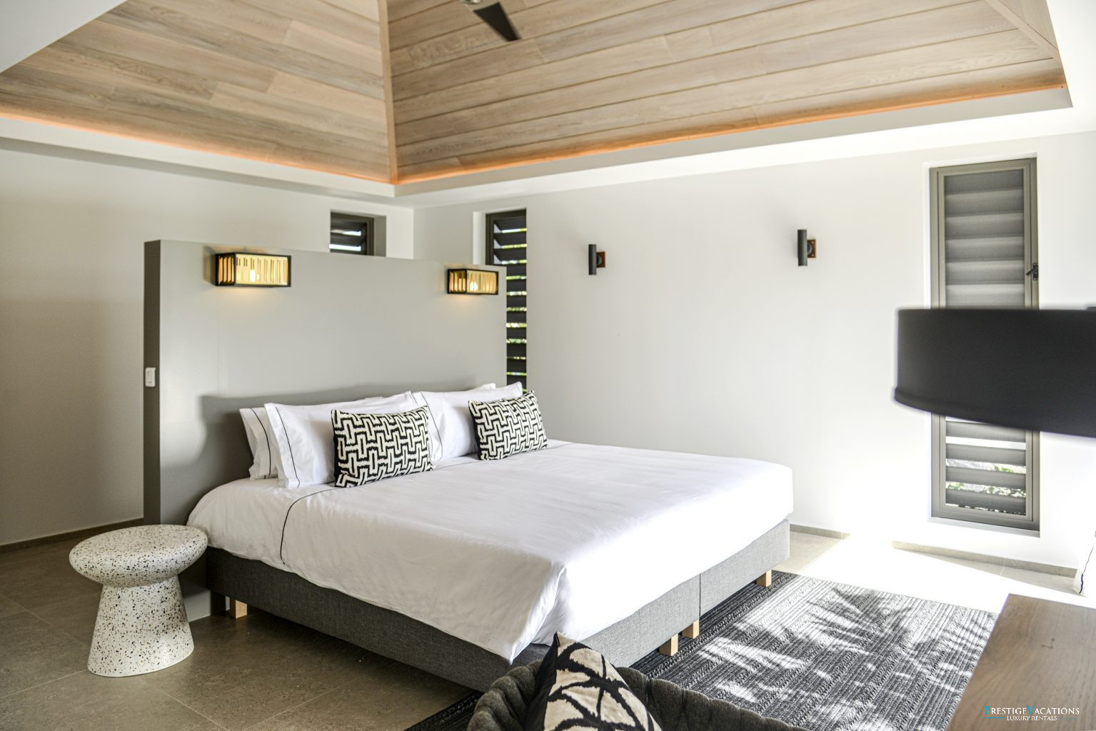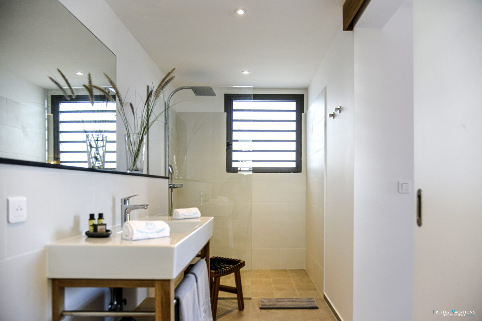 Nichée dans le prestigieux Domaine privé du Levant à Petit Cul-de-Sac, la Villa Lagon Vert illustre l’art de la location de villa luxe à Saint-Barth. Récemment rénovée, cette propriété d’exception dispose désormais de 7 suites élégantes, chacune dotée de hauts plafonds, de larges ouvertures laissant entrer une abondance de lumière naturelle, d’une salle de bain privative et de lits king-size modulables en lits jumeaux selon vos besoins.