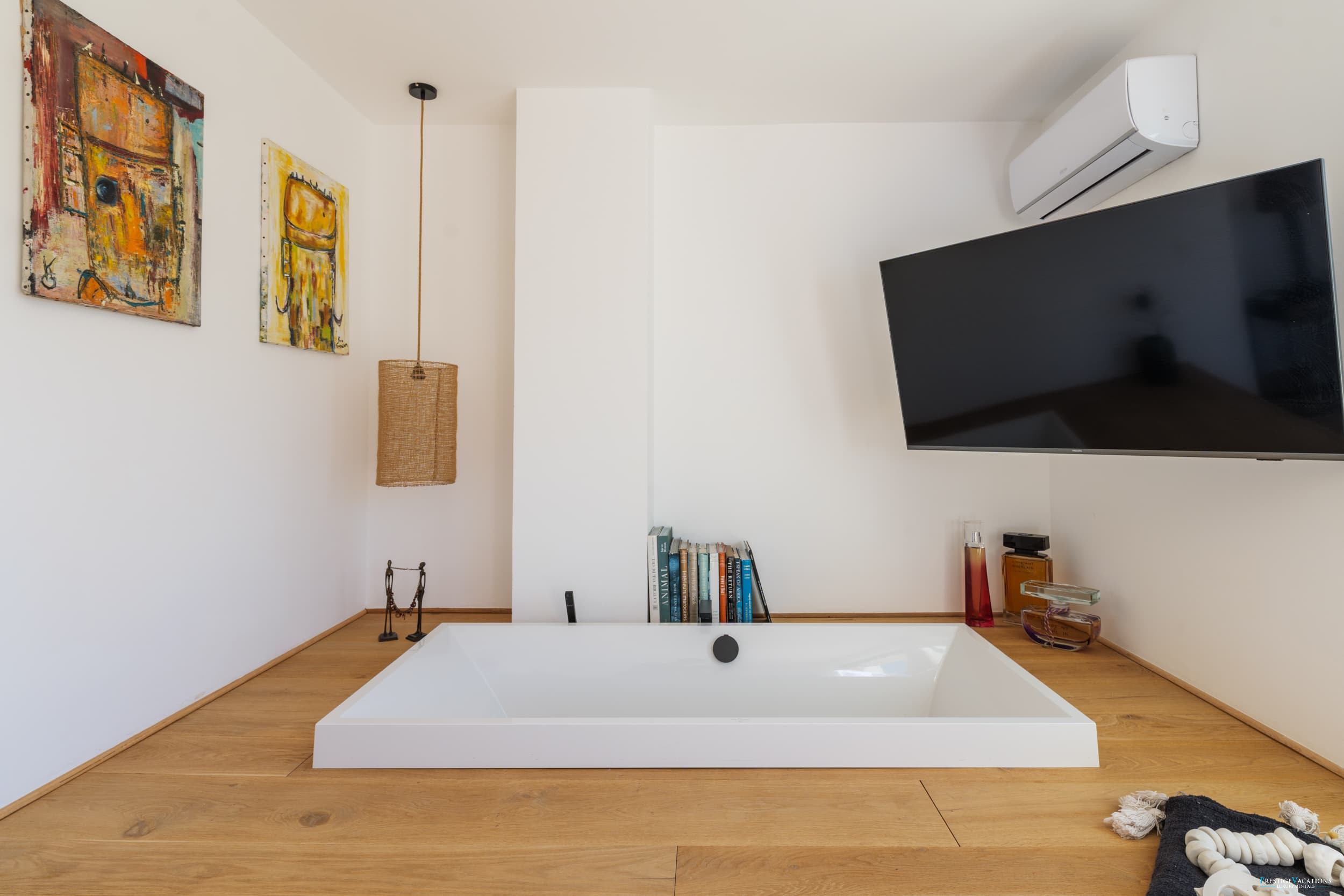 Ce lieu d'exception dispose de cinq chambres donnant toutes sur une terrasse, chacune équipée d'une télévision avec Netflix et de grands lits doubles Queen, tandis que la suite parentale propose un lit King, ainsi qu’une salle de bain attenante avec douche et baignoire. Les matériaux, soigneusement sélectionnés, sont d'une qualité haut de gamme, reflétant l’élégance et le raffinement de cette propriété.