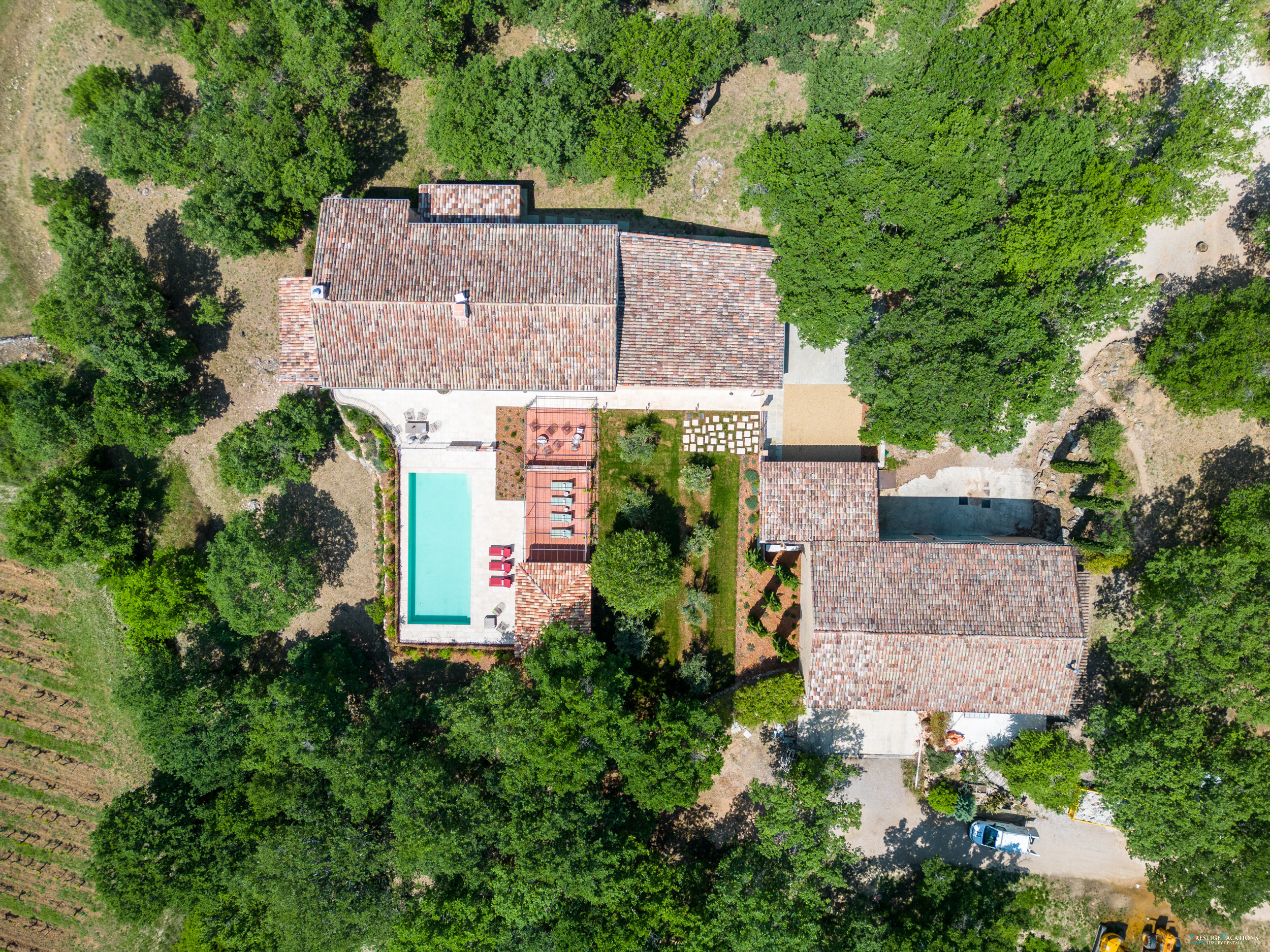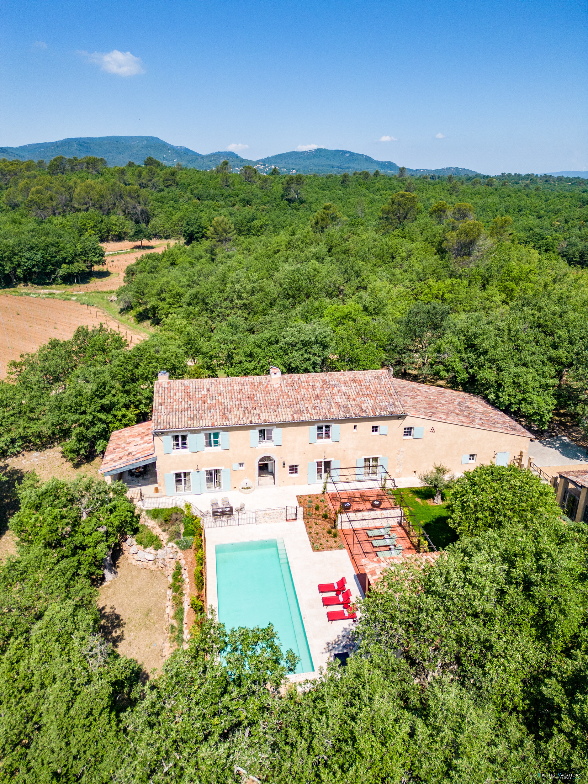 La Bergerie d'Aquino vous invite à découvrir le charme intemporel d'une bastide provençale située au cœur d'un domaine préservé, offrant une escapade exceptionnelle à ceux qui recherchent une location de villa de luxe en France et une location de villa de luxe authentique en Provence. Accessible par un chemin pittoresque de 2 kilomètres serpentant à travers des vignes et des bois, la propriété se révèle comme un sanctuaire serein immergé dans la nature, où tranquillité et élégance coexistent en parfaite harmonie.