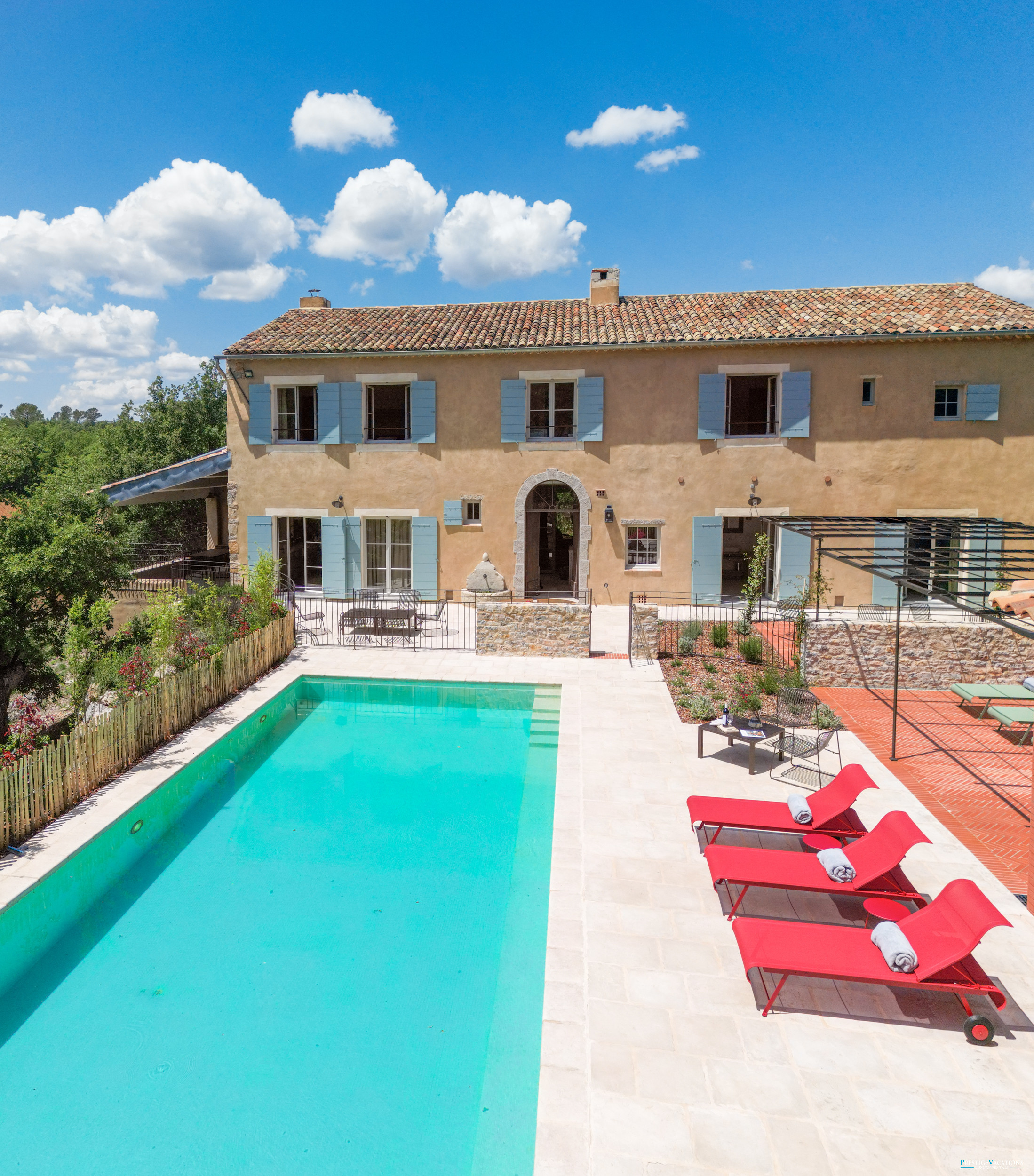 À l'extérieur, la piscine privée est complétée par un pool house doté d'une cuisine entièrement équipée, créant le cadre idéal pour des journées de détente et des soirées conviviales sous le soleil du sud. Le domaine invite à l'exploration, avec des parties de pétanque, des jeux pour enfants et des vélos électriques disponibles pour découvrir la campagne environnante. Les invités bénéficient également d'un aperçu privilégié de la vie du vignoble, avec la possibilité de participer à des séances de dégustation de vin sur place.