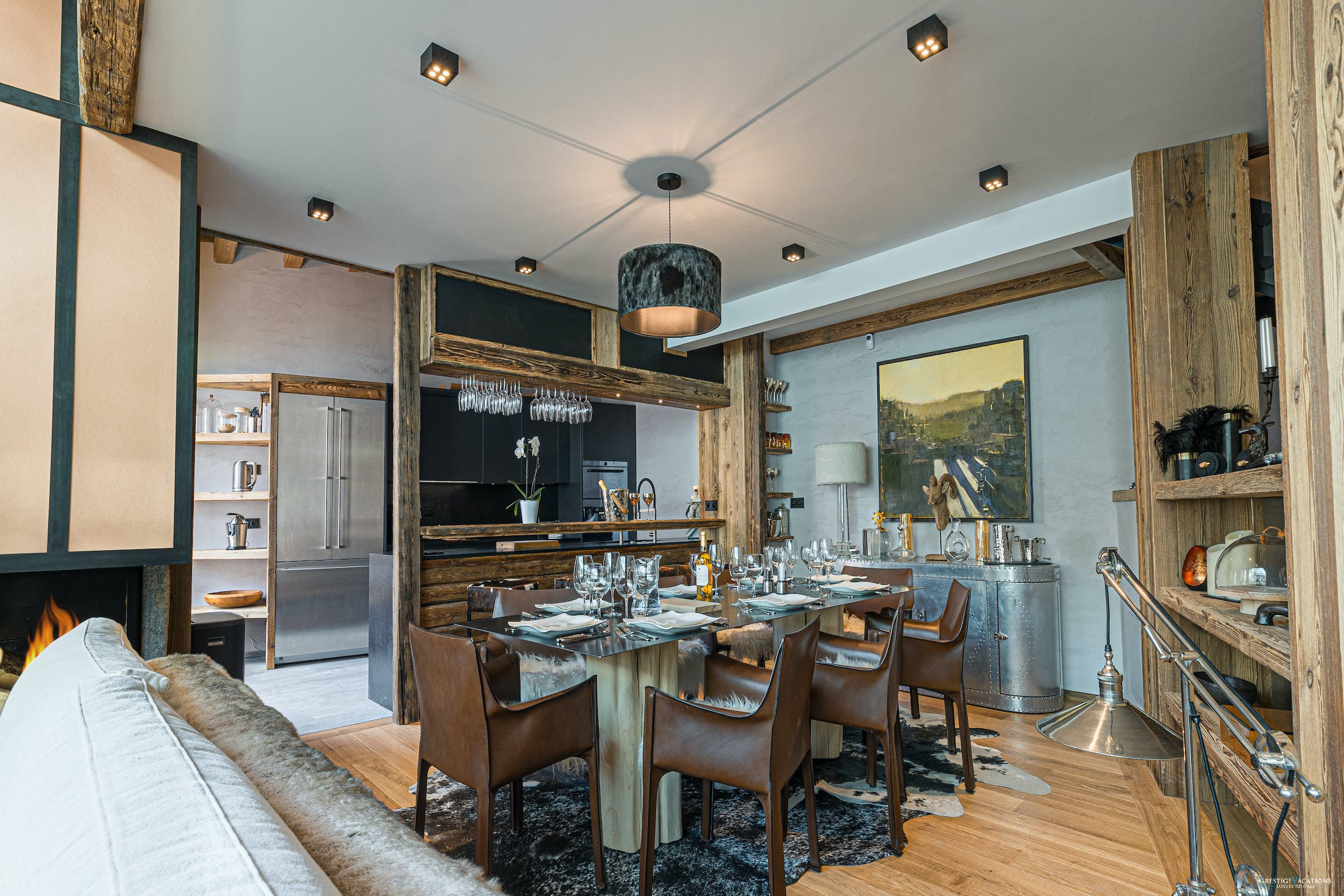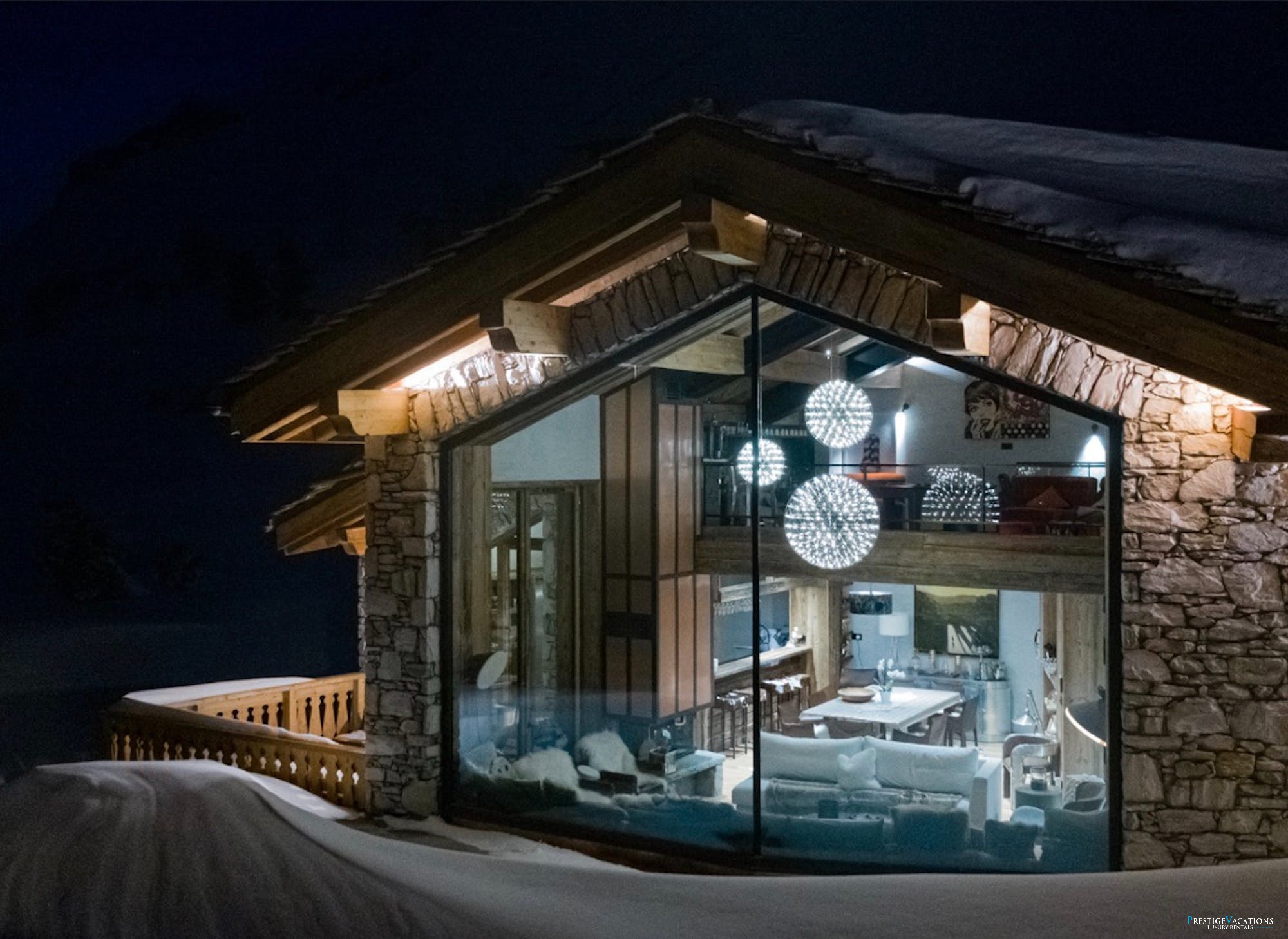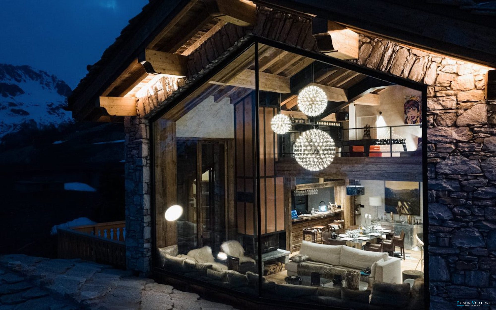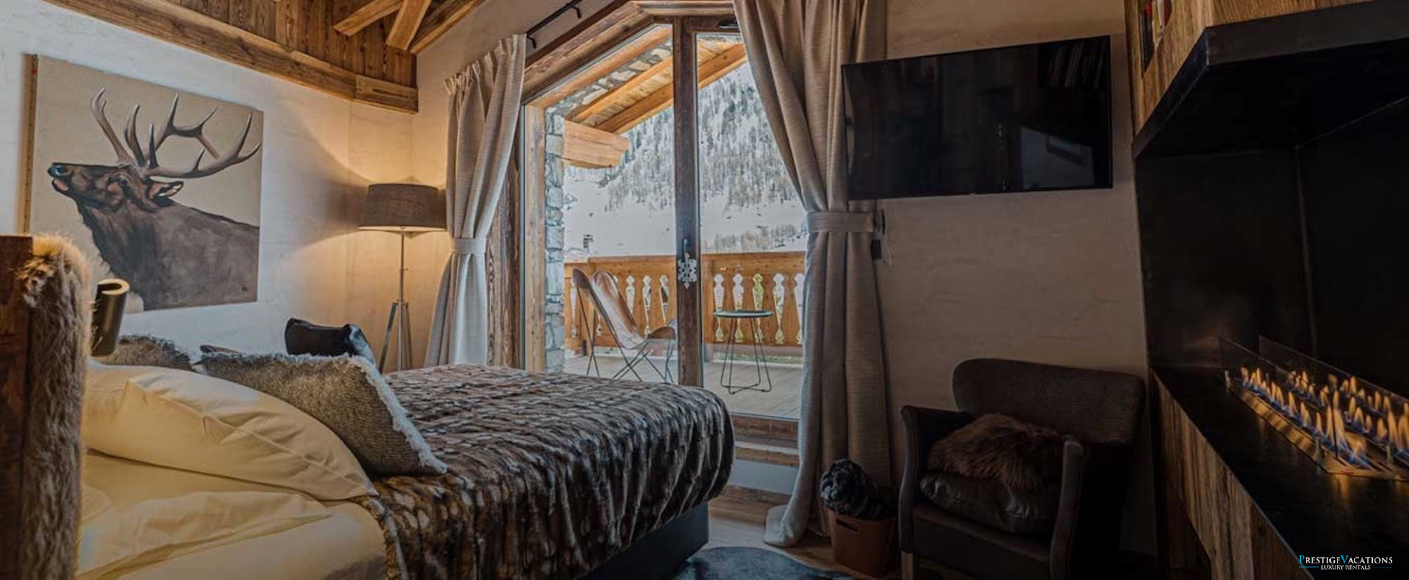 Accommodating up to fourteen guests across five beautifully appointed floors, Chalet Mireille combines traditional alpine charm with modern luxury. The expansive living area invites you to unwind and reflect on the day’s adventures while gazing through wide glass windows at the breathtaking mountain views. Whether you prefer to relax on the vast sofa nestled beside the elegant three-sided glass fireplace or step onto the outdoor terrace to breathe in the fresh mountain air, this space promises cherished moments in a setting of natural beauty.