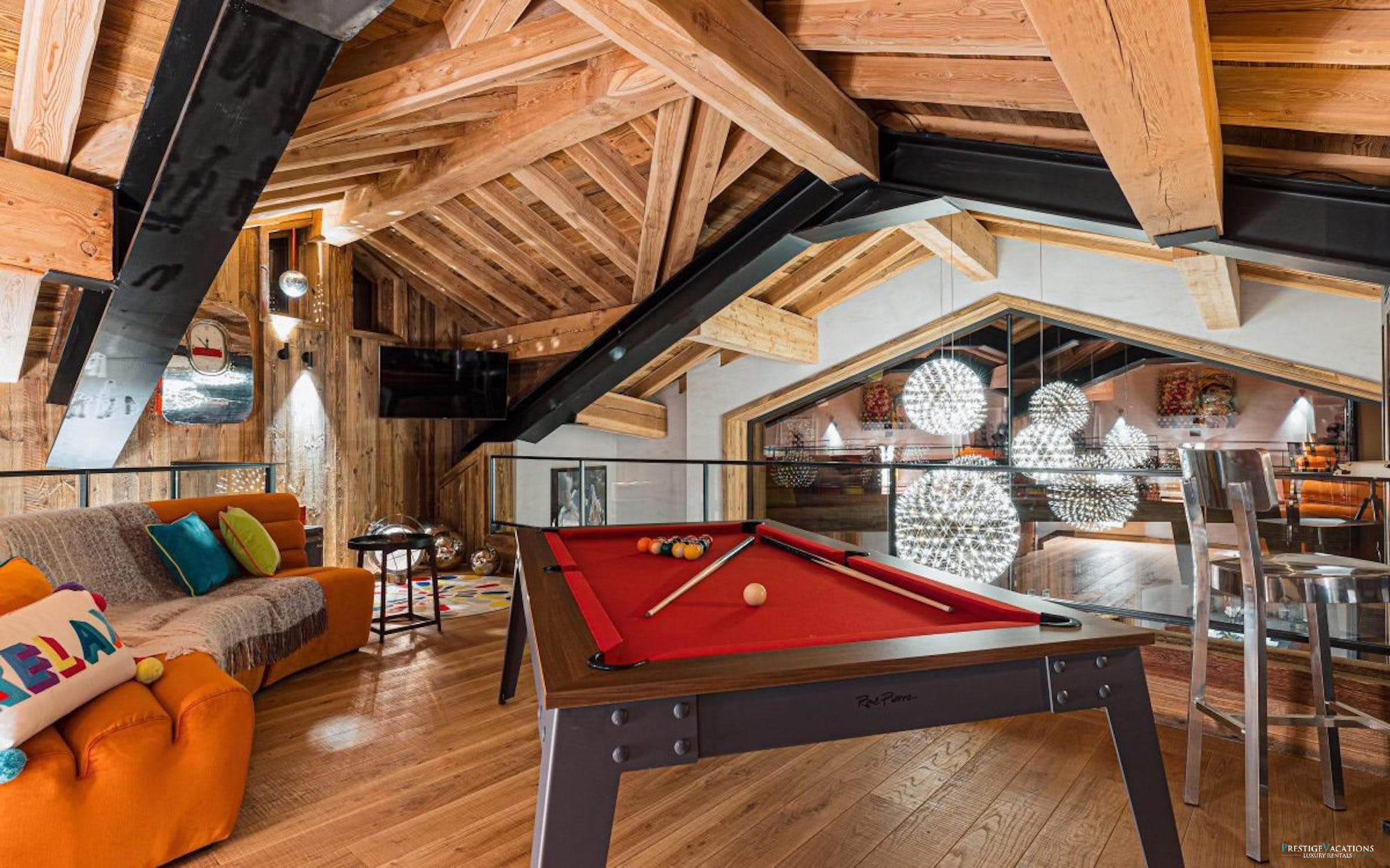 The mezzanine level offers additional leisure options, boasting incredible views over the picturesque village of Le Fornet. This inviting space features a football table, electronic games, a bar and a TV lounge, creating a versatile and enjoyable area for both adults and children to relax and socialise.