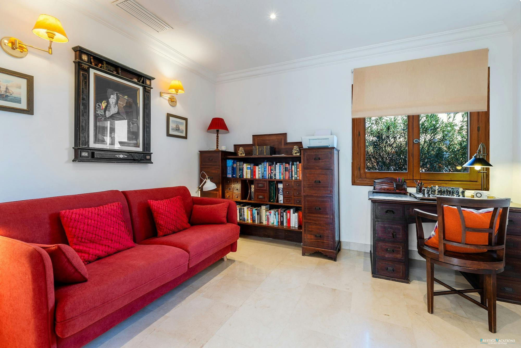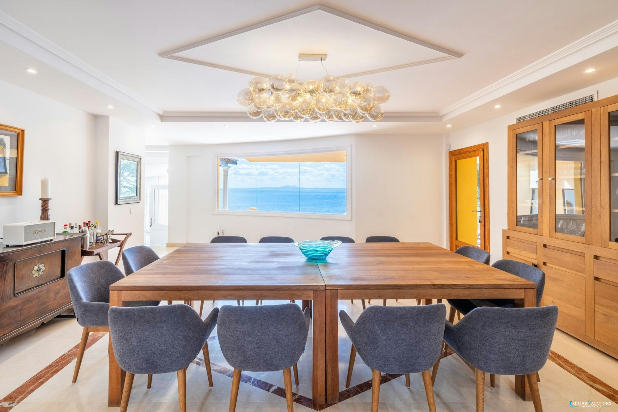 With over 700 square metres of luxurious interior space on a 2,200 square metre plot, Villa Cabello offers generous living areas with panoramic sea views. The expansive living room features air conditioning and a 75-inch flat-screen TV equipped with a Denon Home Cinema System, Bose speakers, Bluetooth connectivity, and a PlayStation 3—ideal for relaxing or entertaining.
