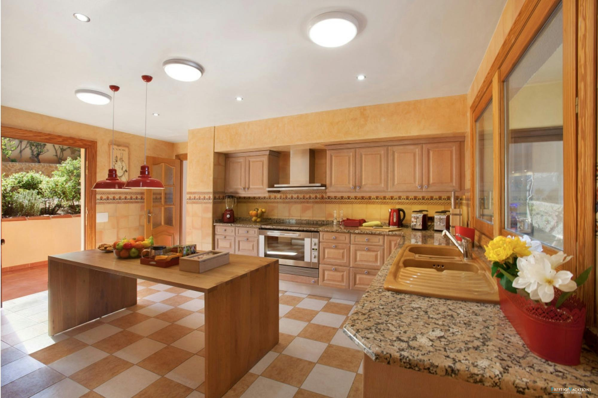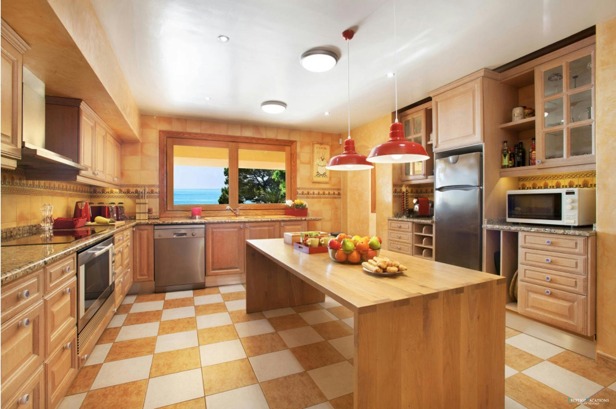 The fully equipped kitchen is a culinary dream, featuring three refrigerators including a large American-style unit with an ice maker, a professional-grade oven, dual Nespresso machines, and thoughtful touches for every gourmet need. Multiple dining spaces allow you to enjoy your meals indoors with stunning views or outside on the terrace with a solid teak table or in the shaded chill-out lounge.