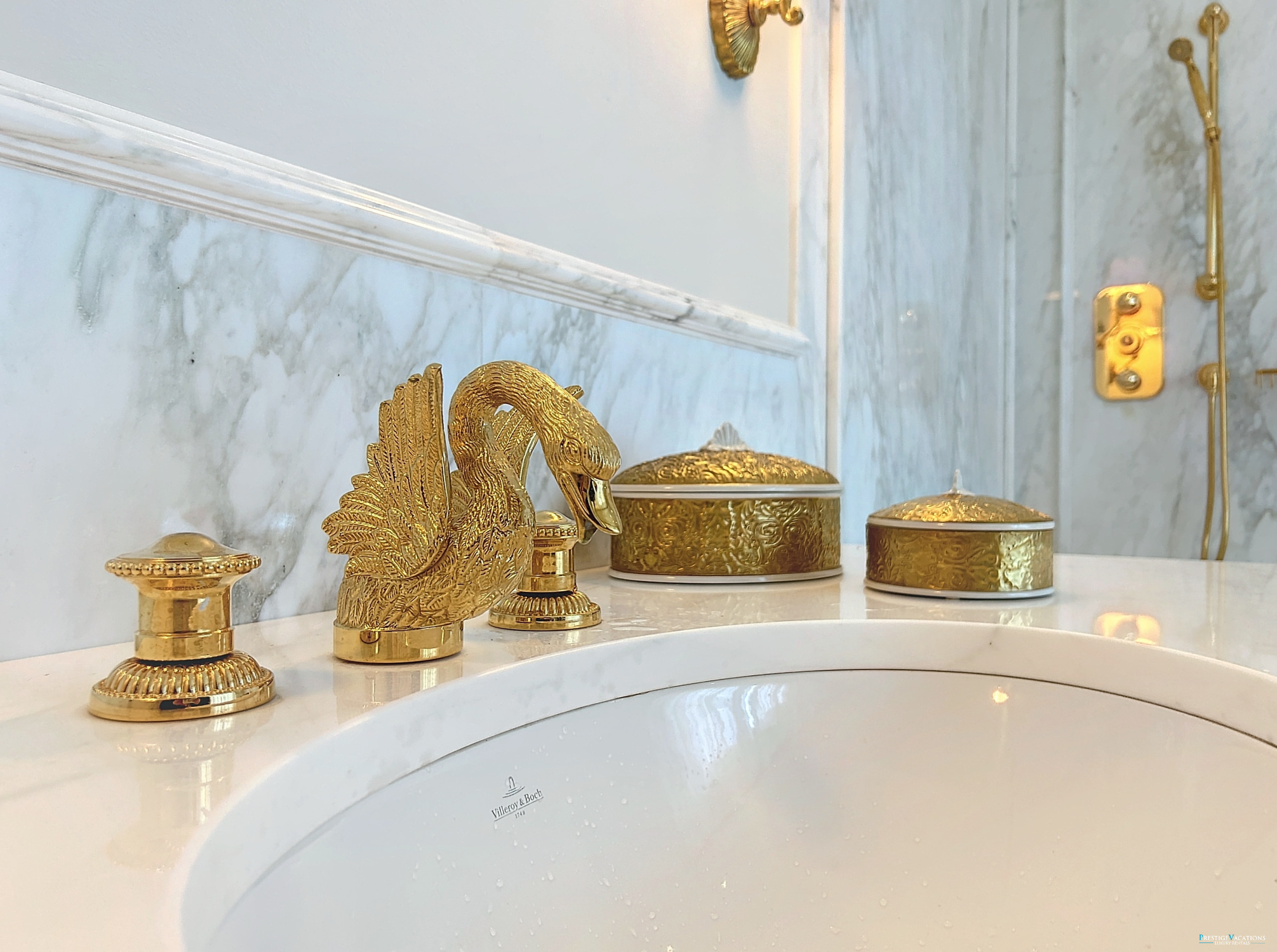 The eight rooms of the Villa Palace de Lys embody the pinnacle of comfort and style, with luxurious amenities, marble bathrooms, spacious walk-in closets and, for some, private balconies offering sublime panoramas. An independent guest house of 70 m² spread over two floors completes this unique ensemble, ideal for hosting friends, family, or staff.