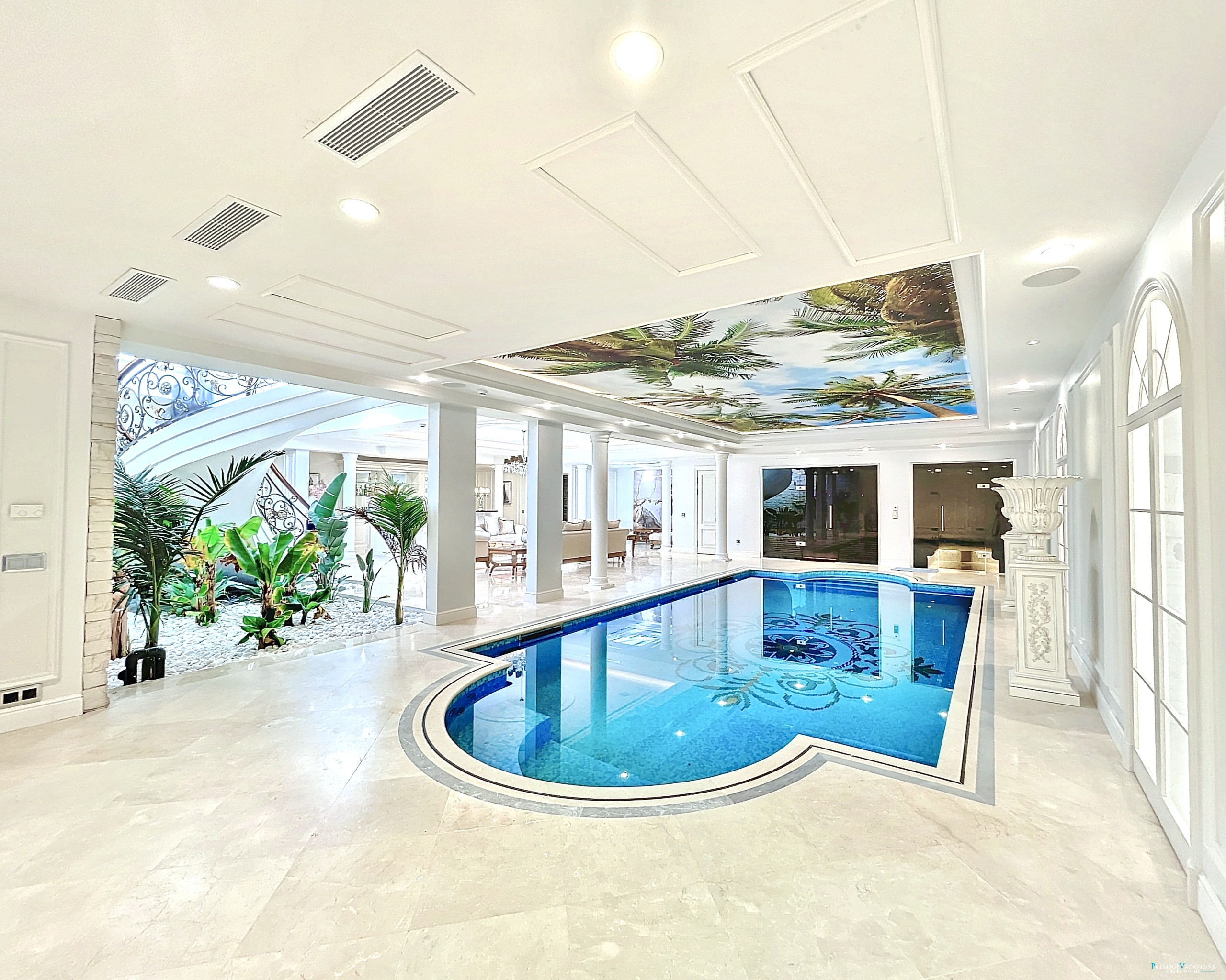 Sports enthusiasts will be seduced by the professional tennis court with synthetic grass, lit and equipped with sound system, perfect for matches during the day or in the evening. A secure underground tunnel discreetly connects the villa to the private garage, which can accommodate up to 24 vehicles thanks to two dedicated elevators.