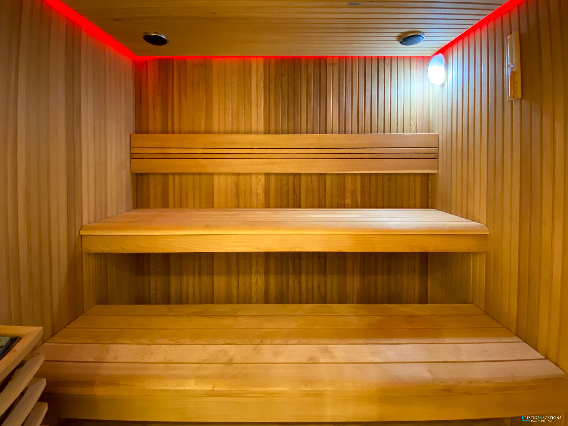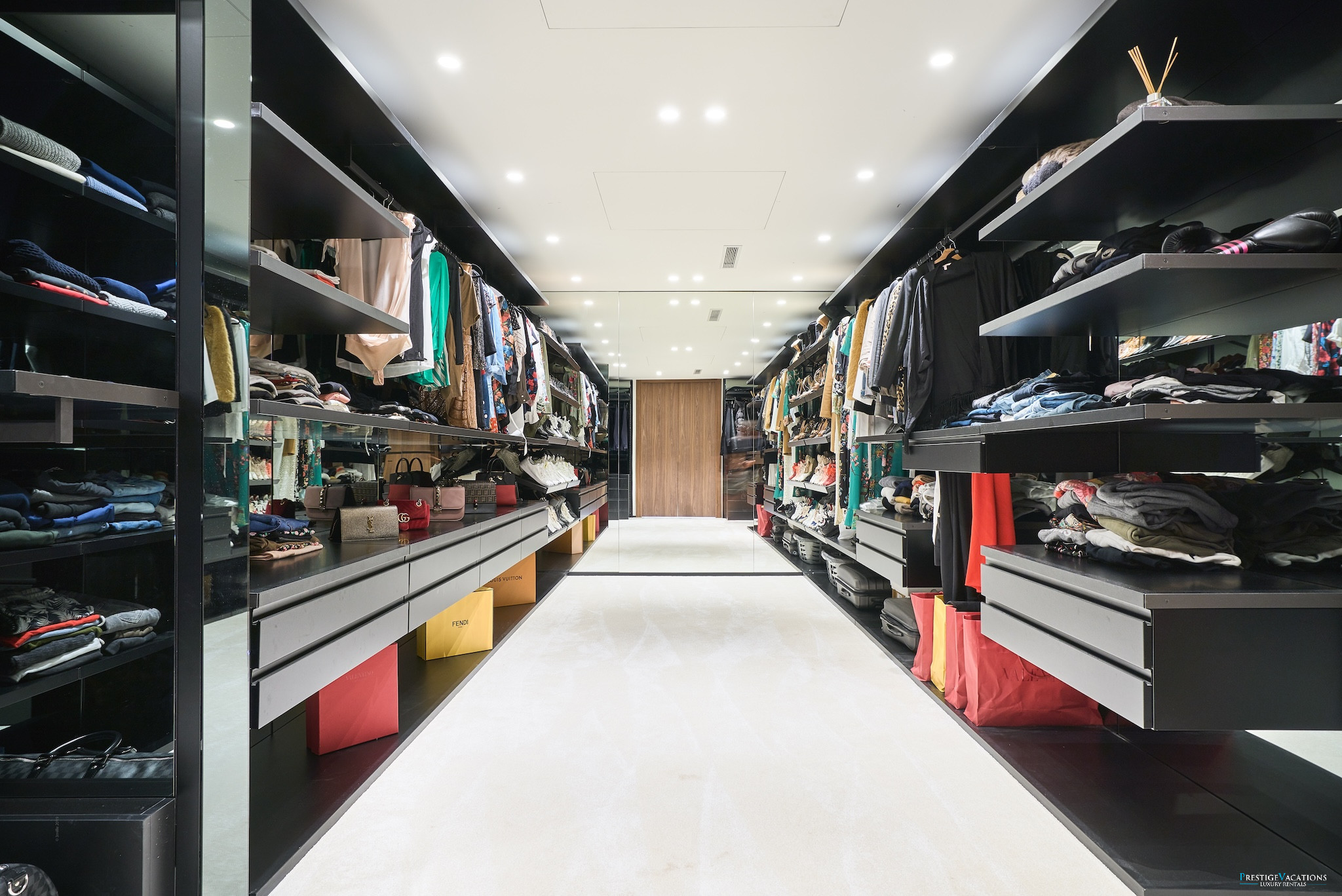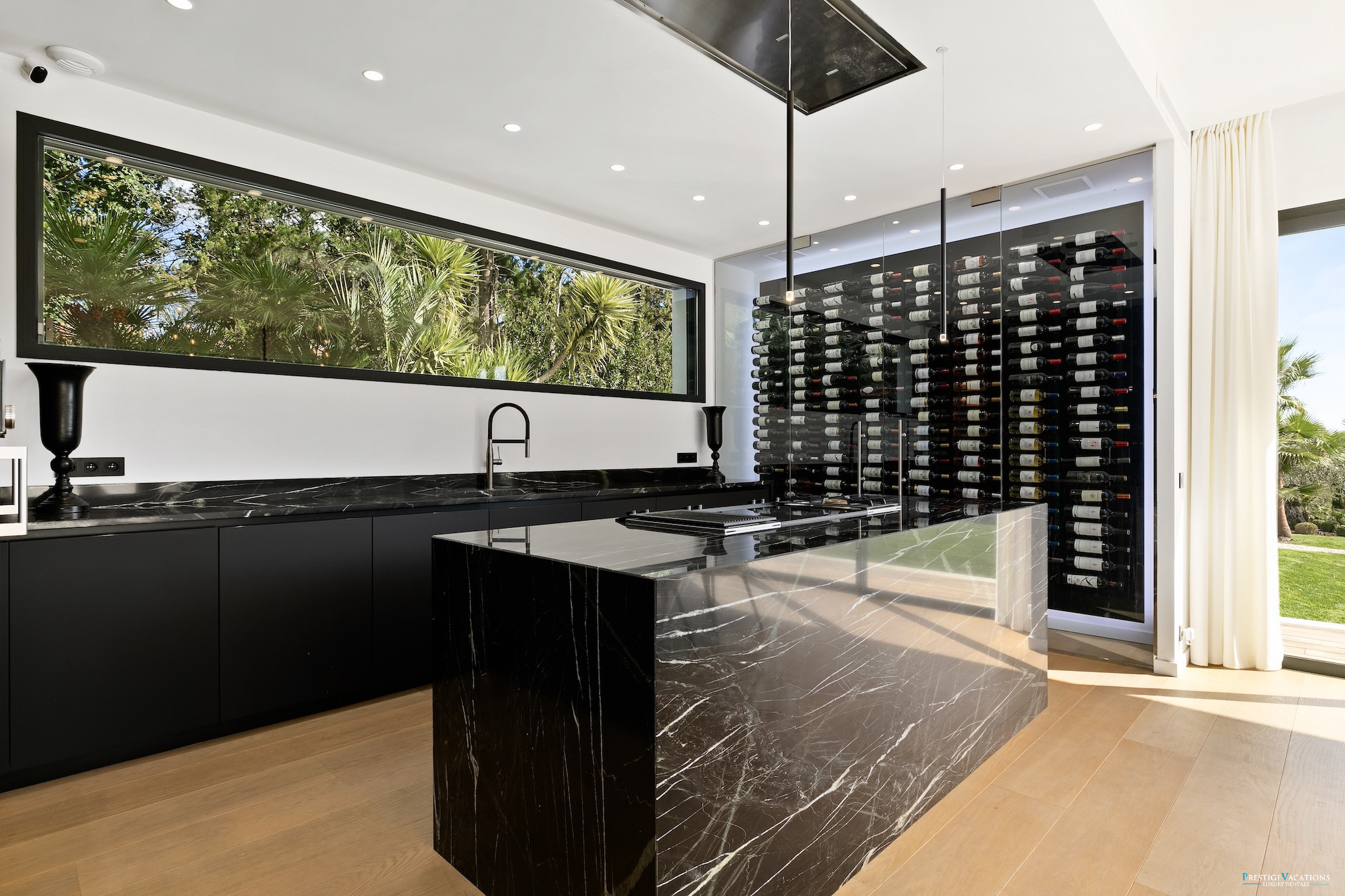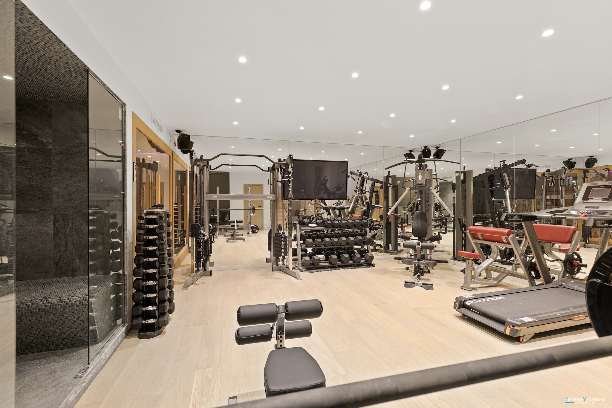 The vast reception space is organized around an elegant living room with a high-end audio system, internet fibre and complete home automation. The fully equipped professional kitchen will seduce gastronomy enthusiasts and can easily accommodate a private chef for exclusive culinary experiences. A private cinema room with reclining seats, a fully equipped gym with sauna and hammam, as well as an elevator serving the levels of the villa further reinforce the exceptional character of this property.