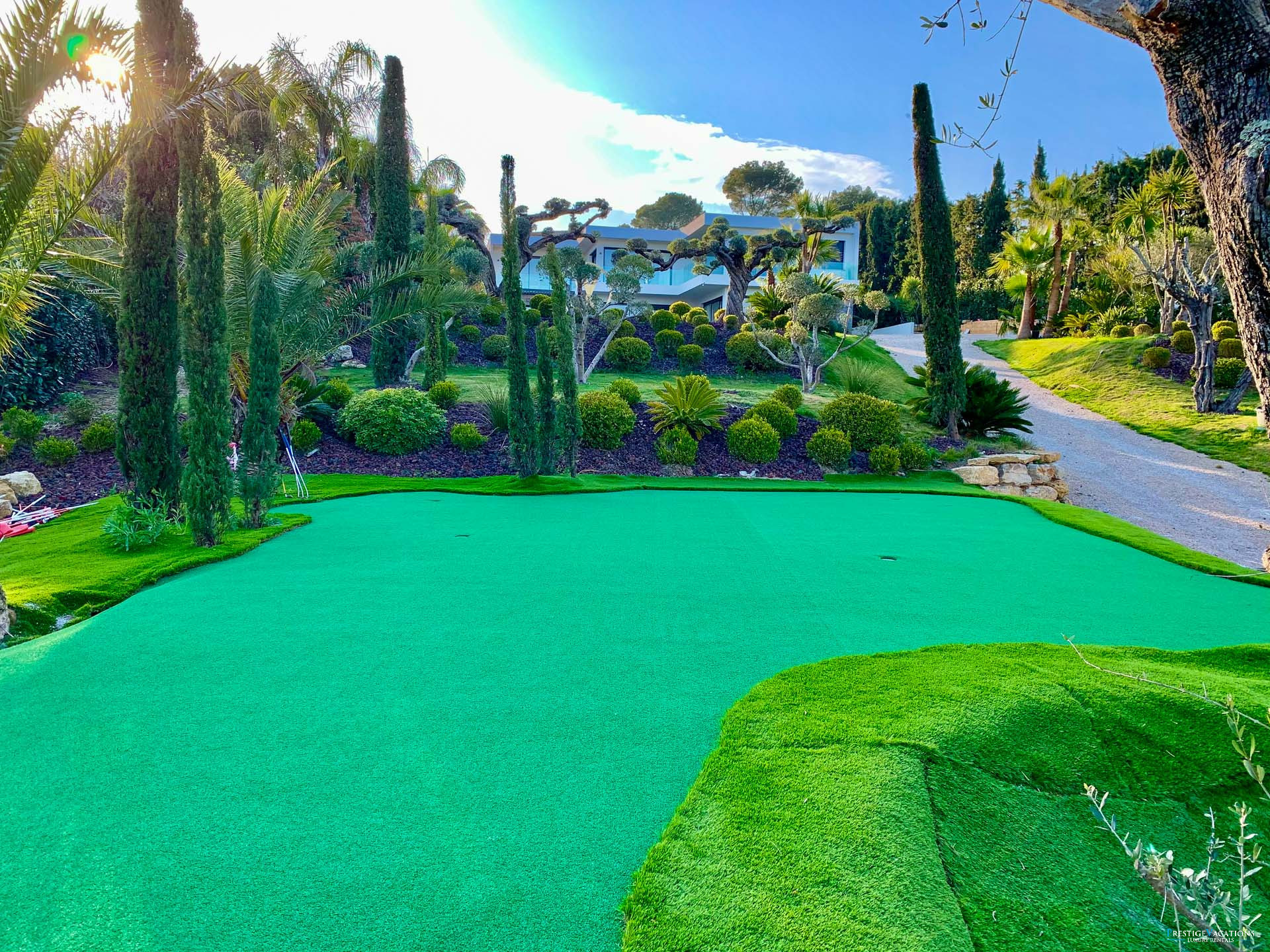 Outside, Villa Mila reveals its full potential with terraces of over 200 m², a heated swimming pool surrounded by sunbeds and a perfectly equipped pool house. The landscaped garden also features a private five-hole putting green, a barbecue and plancha area, and a summer kitchen ideal for receptions and summer evenings. A vast parking area capable of accommodating up to twelve vehicles completes the amenities of this luxury villa rental near Cannes.