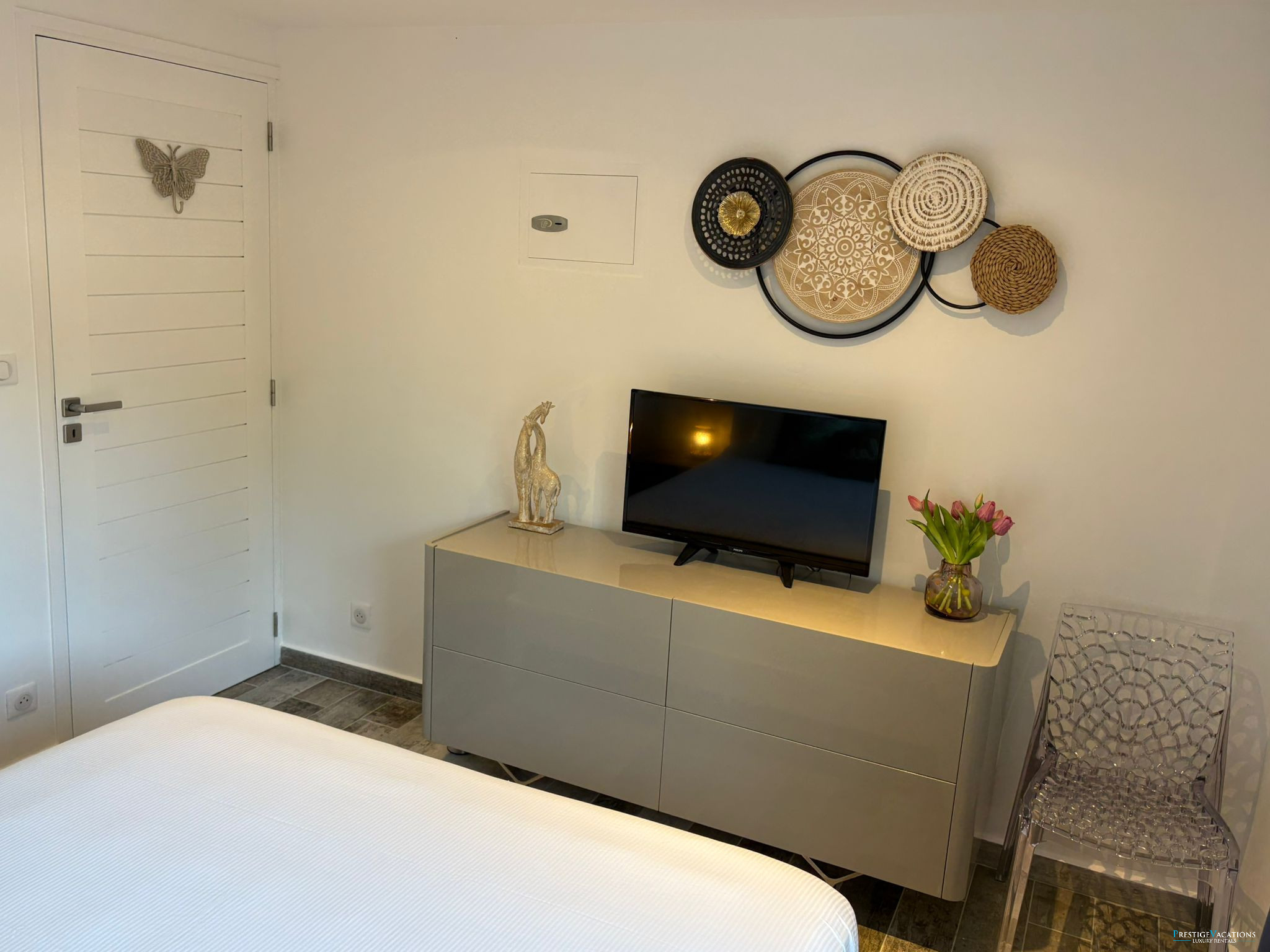 The villa has two bedrooms with private bathrooms, a friendly living area with a sofa bed that can accommodate up to six people, as well as a fully landscaped garden that ensures peace and privacy. The kitchen is fully equipped for your meals with family or friends: oven, hob, dishwasher, refrigerator, microwave, barbecue, coffee maker, kettle, blender, ice maker and even a lobster pot to savour local specialities.