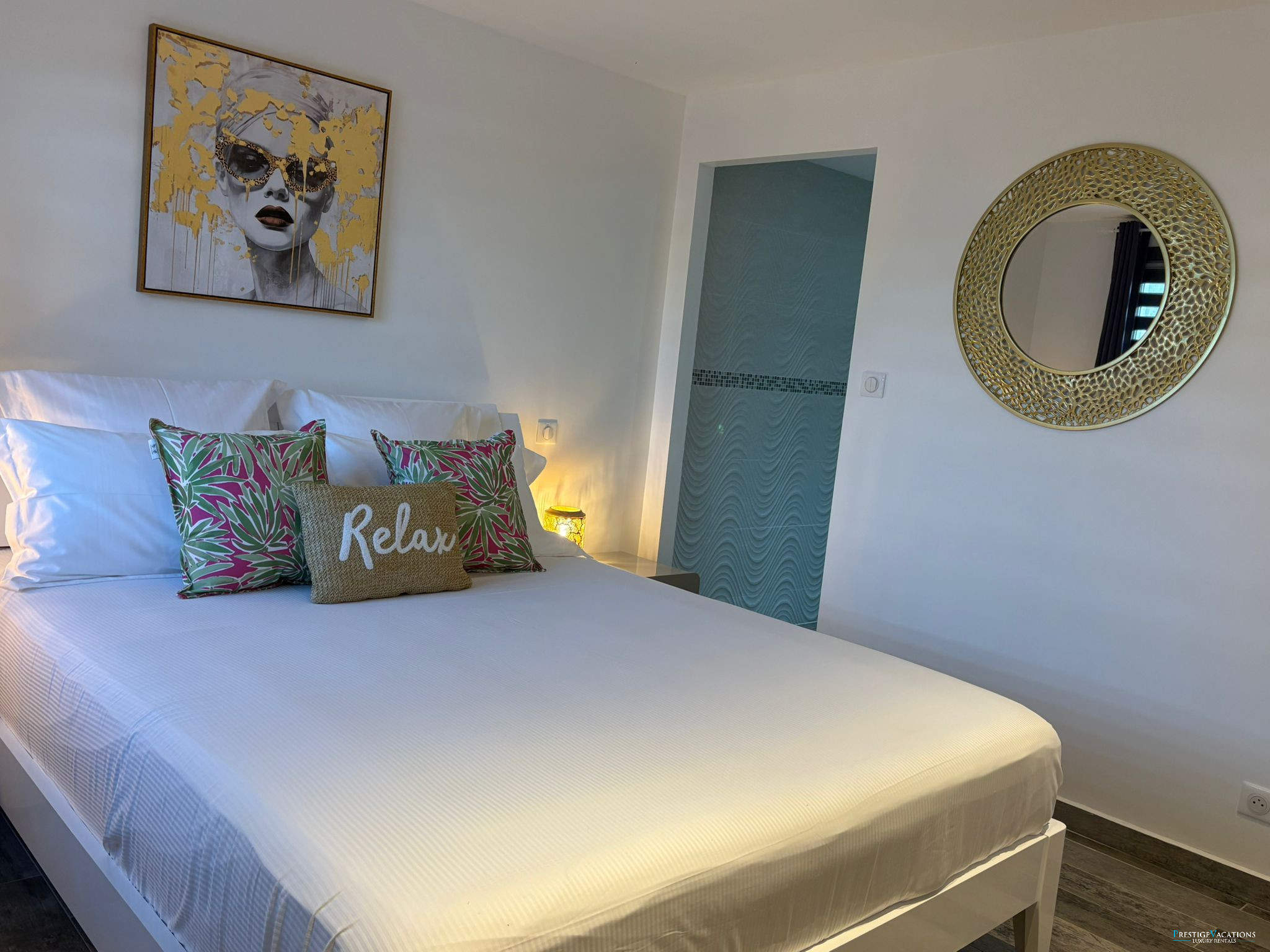Villa Katorz benefits from a privileged location in Saint-François. The Pointe des Châteaux is located just 2.5 km away, the magnificent beach of Anse à la Gourde is 4.8 km away and also accessible on foot by a small path, and the Raisins Clairs beach is 10 minutes by car, in the heart of the lively Saint-François centre with its restaurants, markets and water activities.