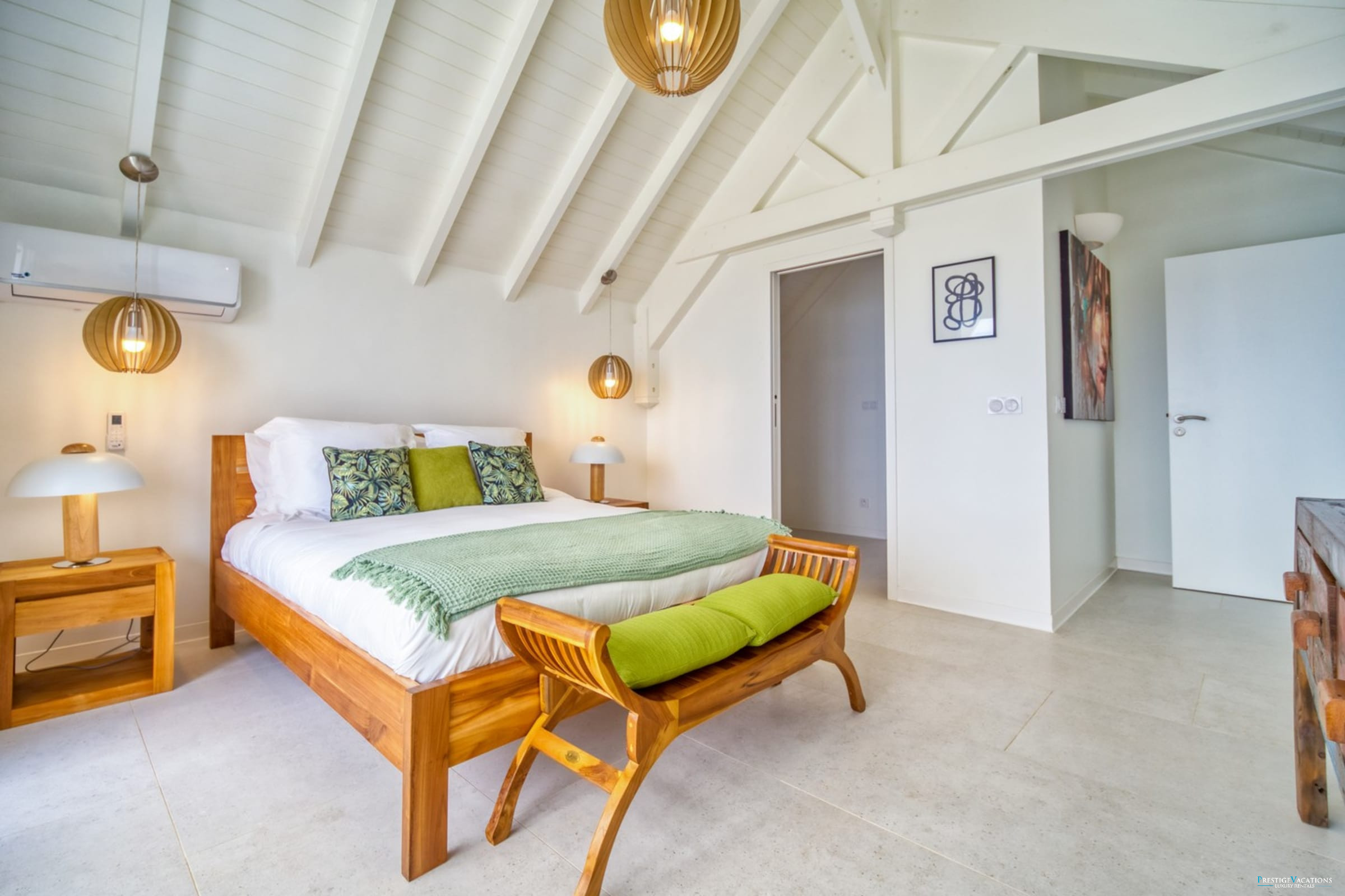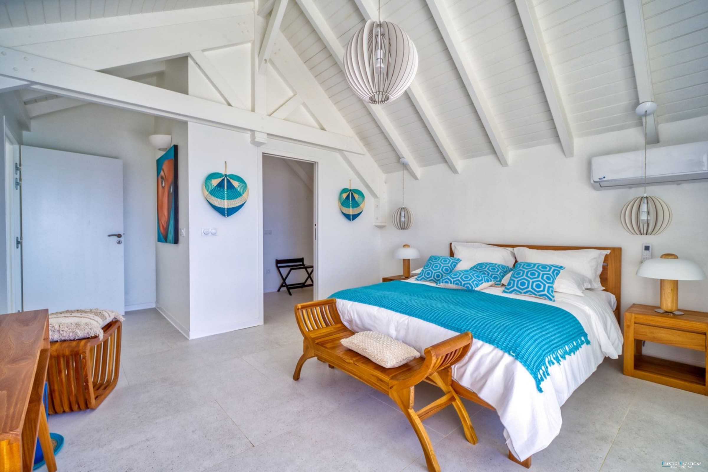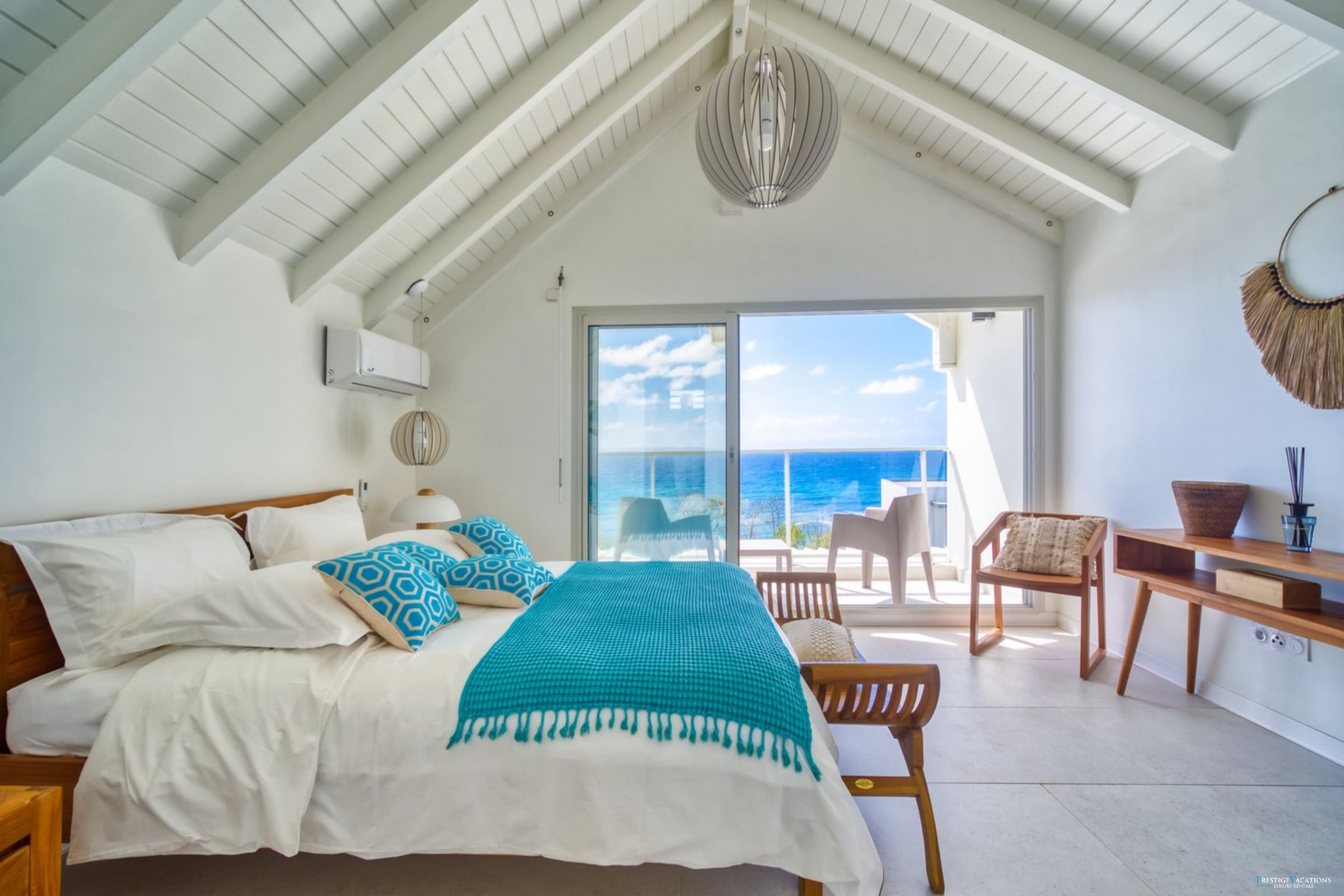 Upstairs, the villa reveals a space dedicated to rest and conviviality, fitted with comfortable sofas, cable television, board games and a selection of books about Guadeloupe. Two new parental suites, located on either side, each have a private balcony with an outdoor lounge, offering an even more stunning sea view from this height. The entire house has been designed to preserve everyone's privacy while promoting moments of sharing.