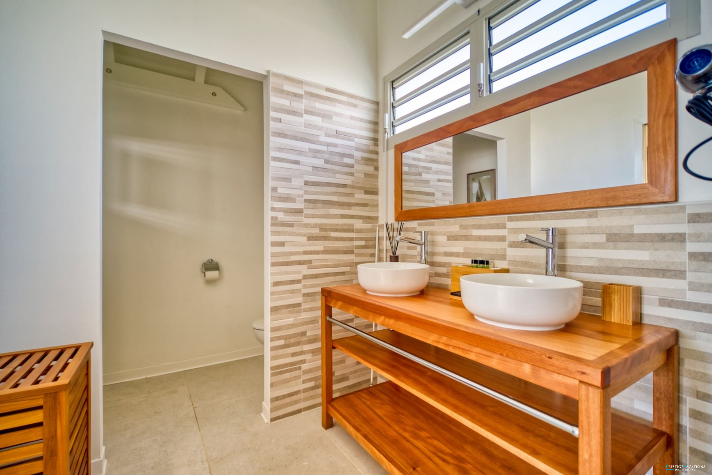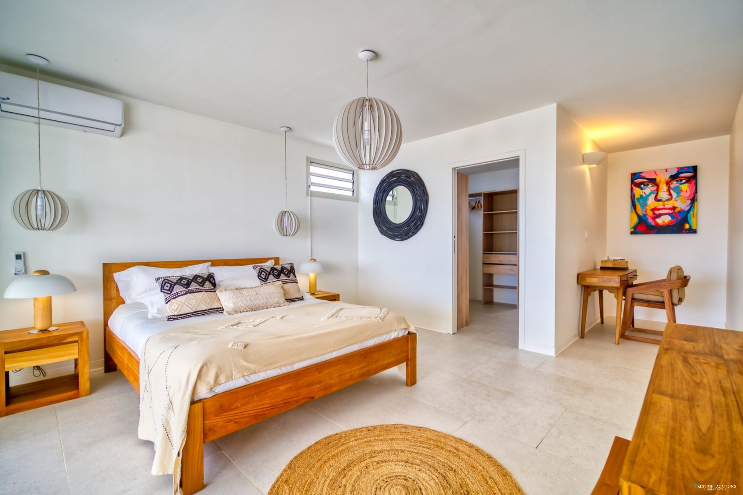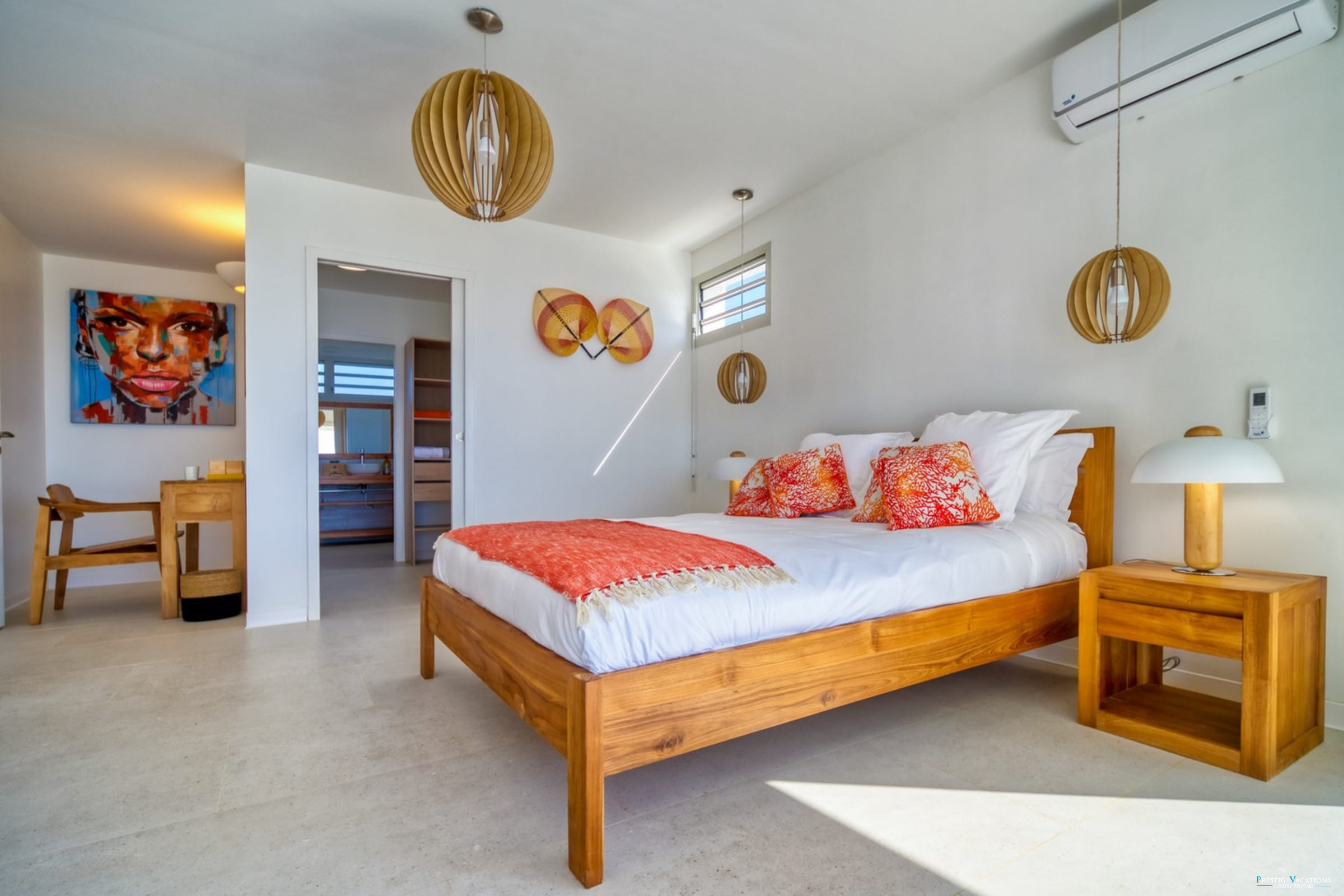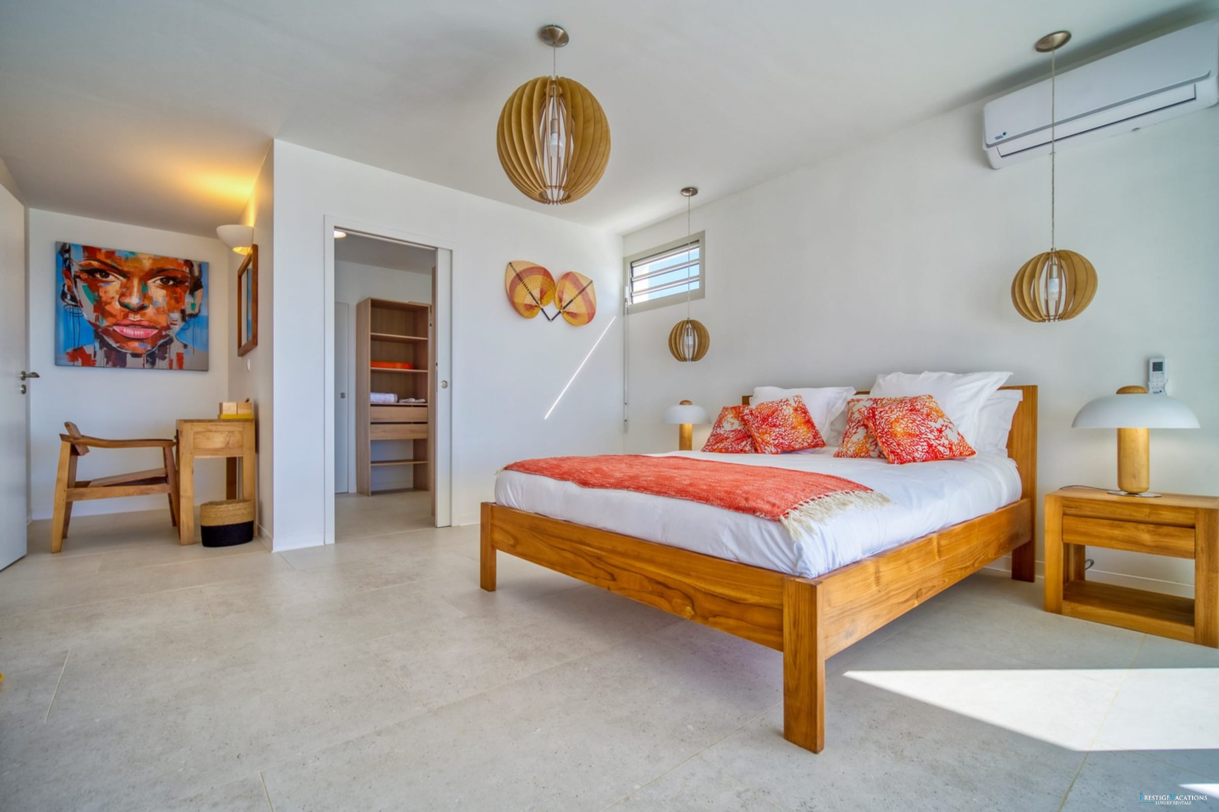 Upstairs, the villa reveals a space dedicated to rest and conviviality, fitted with comfortable sofas, cable television, board games and a selection of books about Guadeloupe. Two new parental suites, located on either side, each have a private balcony with an outdoor lounge, offering an even more stunning sea view from this height. The entire house has been designed to preserve everyone's privacy while promoting moments of sharing.