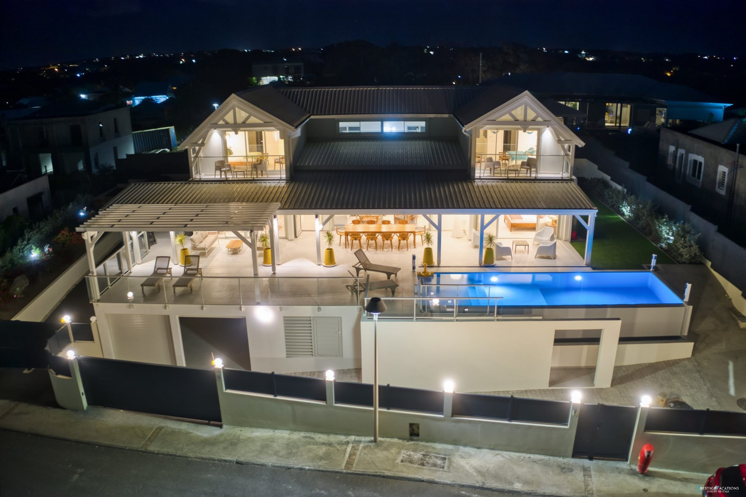 The Villa Sand Blue is among the most beautiful addresses for a luxury villa rental in Saint-François, offering a spectacular sea view and a stay setting that is both refined, comfortable and intimate. Located on the coastal tourist route, within a secure residential area, this villa benefits from a privileged location just a few minutes from the marina, beaches, shops, restaurants and essential services, while maintaining a peaceful and exclusive atmosphere.