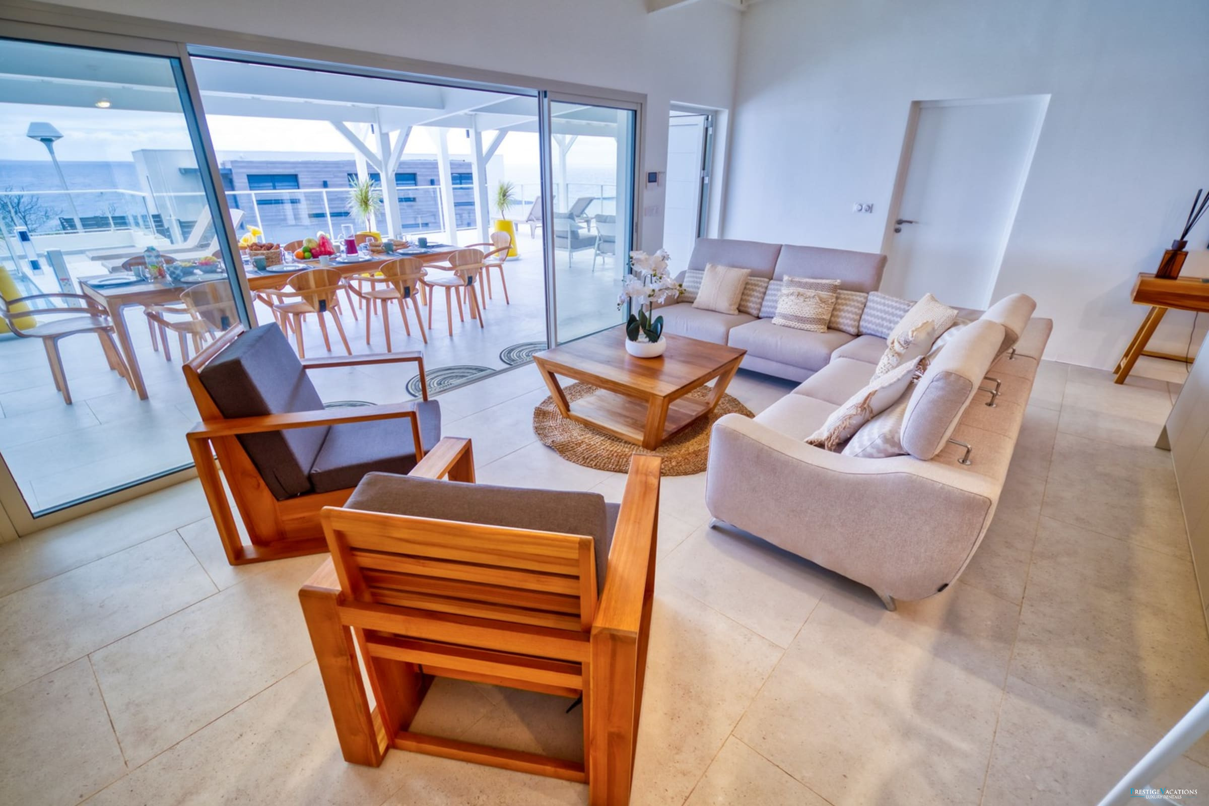 Upon arrival, the Villa Sand Blue captivates with its contemporary elegance and the quality of its facilities. Designed to accommodate up to eight adults and one child, it offers four air-conditioned parental suites, all facing the sea, ensuring optimal comfort and perfect privacy for each guest. Each suite features a study, an individual dressing room, a modern bathroom with an Italian shower and private toilets, in a bright and soothing atmosphere where the blue of the ocean accompanies each awakening.