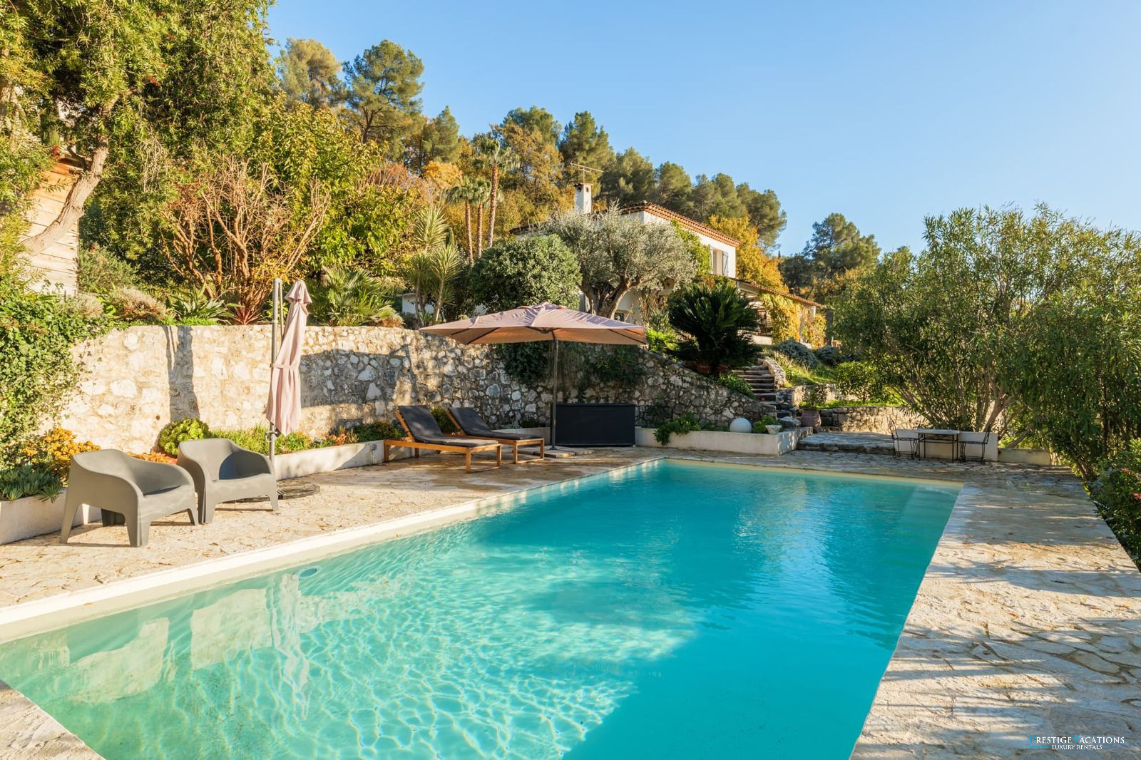 Designed for optimal comfort, this luxury villa for rent in Saint-Paul-de-Vence is equipped with ducted air conditioning, an alarm system, Wi-Fi, as well as a regular gardening service. Pool maintenance can be adjusted according to the needs of the stay, ensuring total peace of mind.