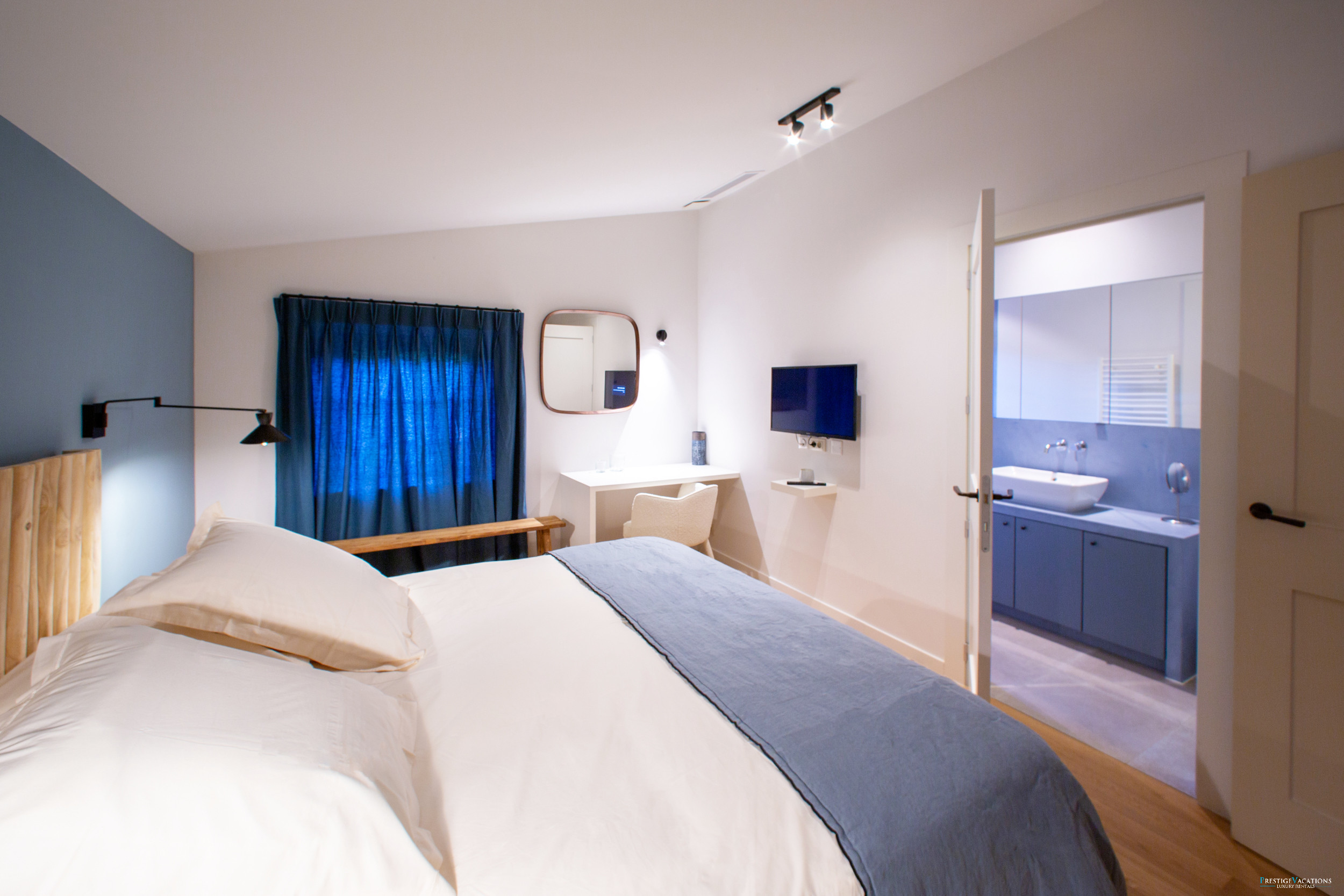 Designed to evoke warmth and authenticity, the bastide unfolds into generous living spaces that encourage both relaxation and togetherness. A spacious living room with deep armchairs and a fireplace creates an inviting setting for quiet moments, while the dining room and a separate television lounge offer additional spaces to gather or retreat. Every detail reflects the essence of Provençal living, where time slows and each moment is savoured.