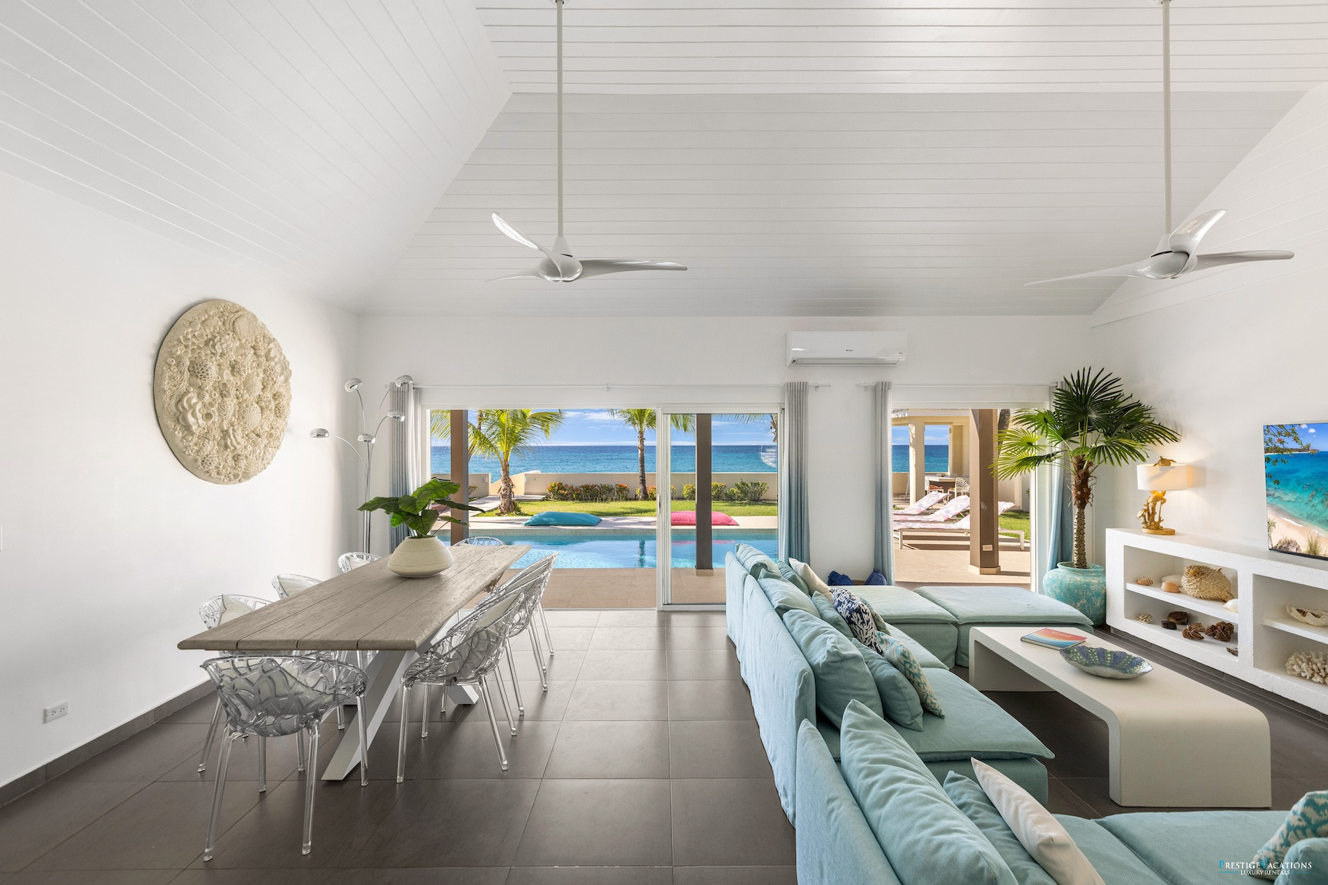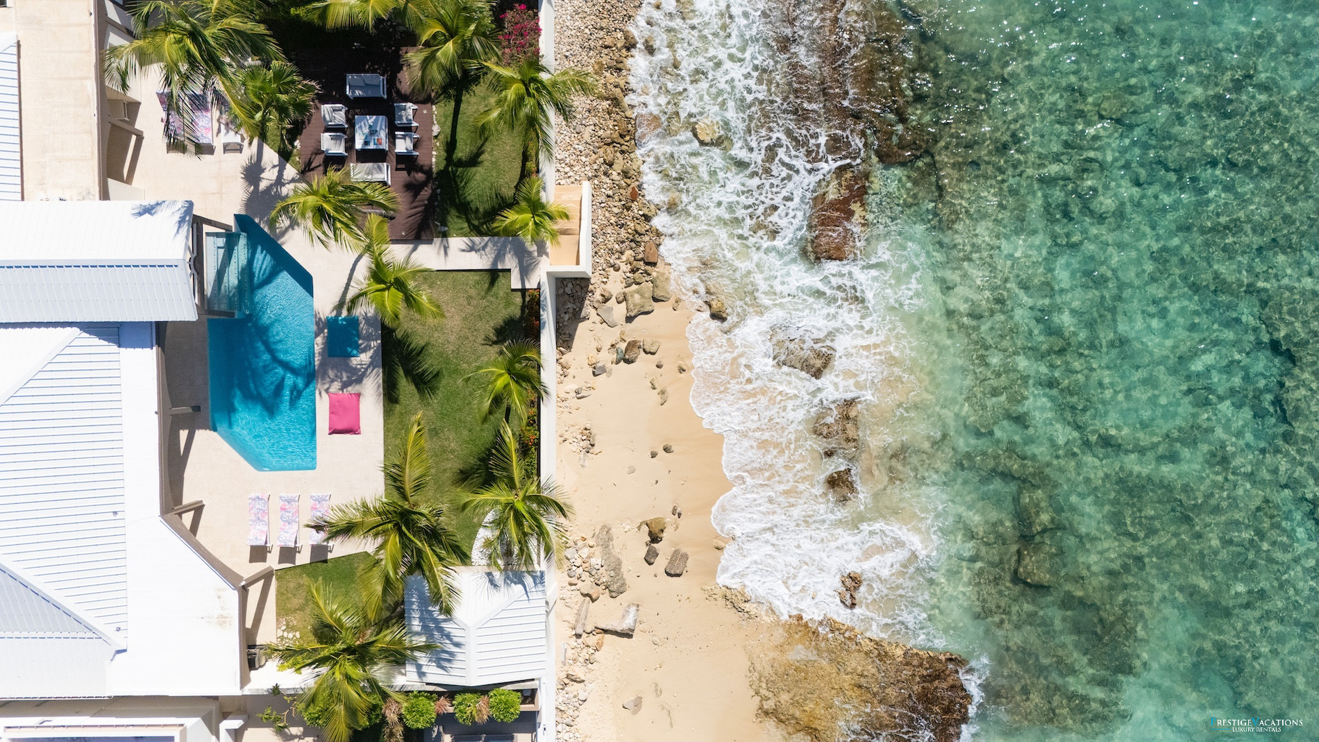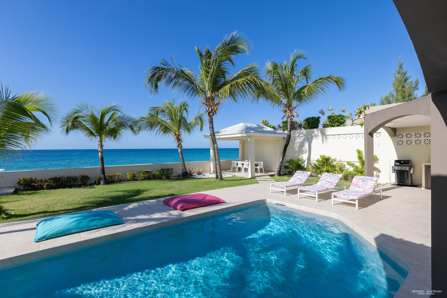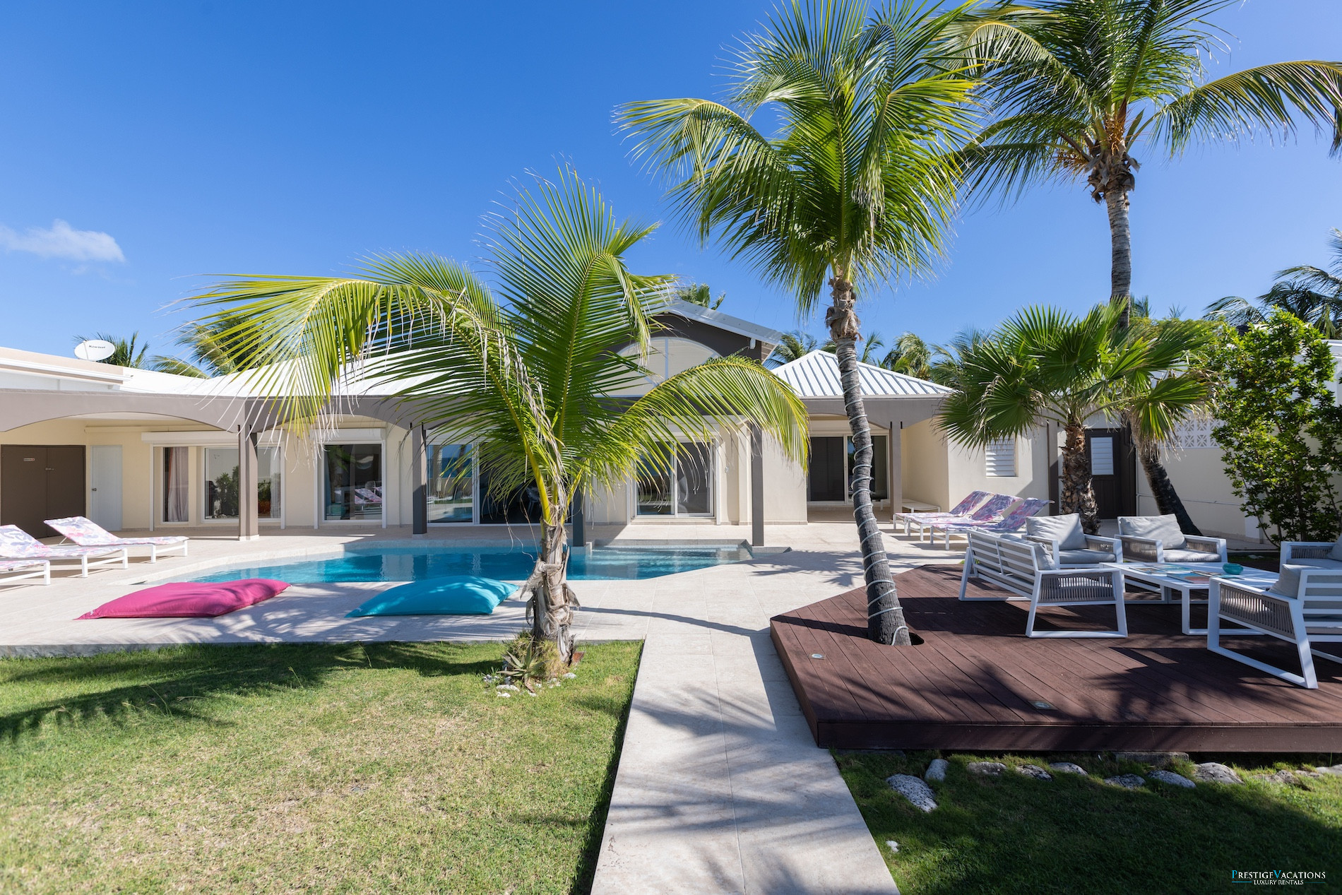 This modern and elegant villa features 4 spacious bedrooms, each with a private bathroom, offering maximum comfort and privacy to all its guests. The contemporary design of Villa Beach Secrets, its large open spaces, and refined decor make it a perfect place to stay for high-end vacations in Saint Martin.