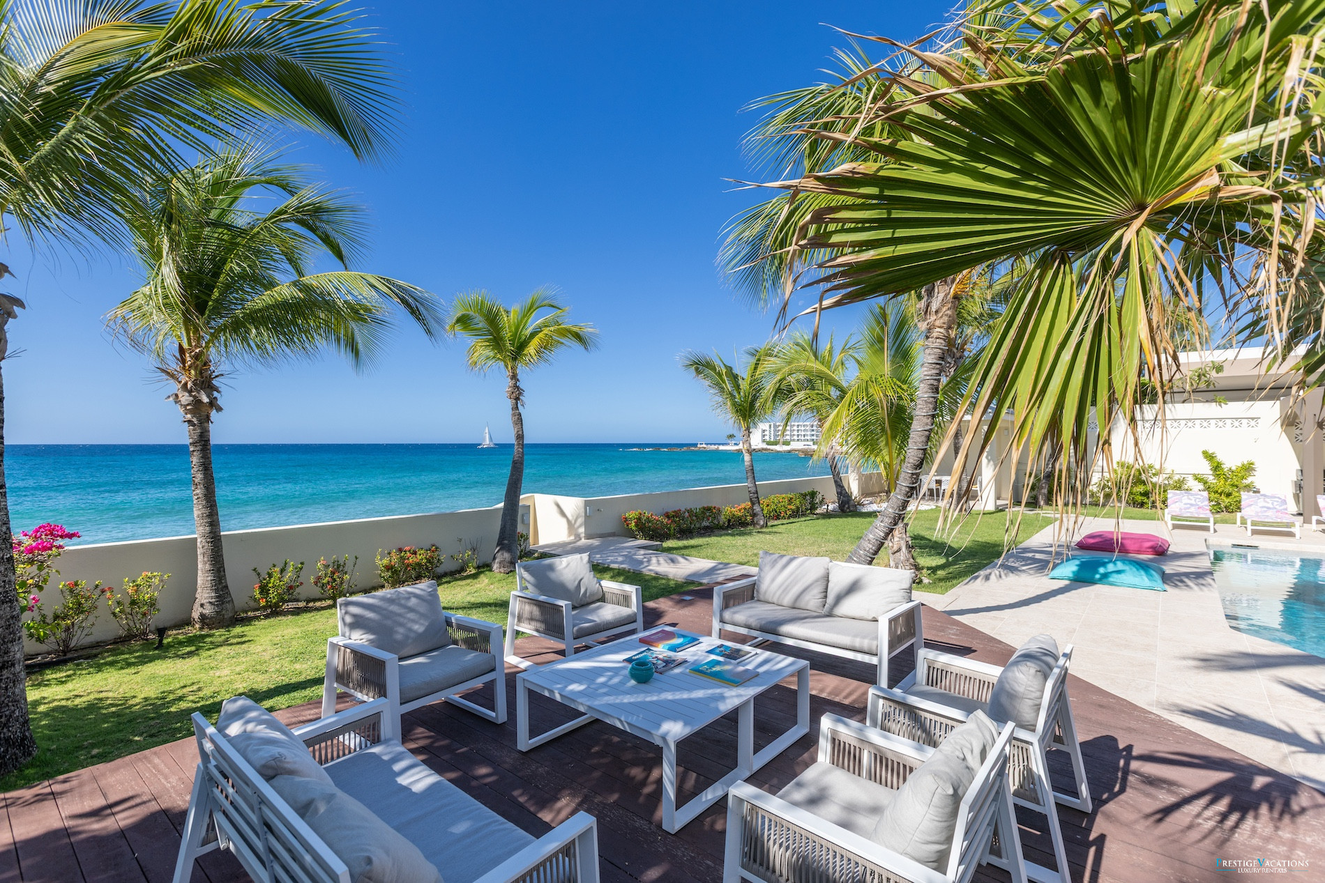 The location of this luxury villa for rent in Saint Martin is a major asset. Just a 5-minute walk away is the famous Maho Beach, world-renowned for its low-altitude landing planes. The Maho neighborhood is also packed with restaurants, bars, shops, and offers a lively nightlife, ideal for travelers seeking entertainment.